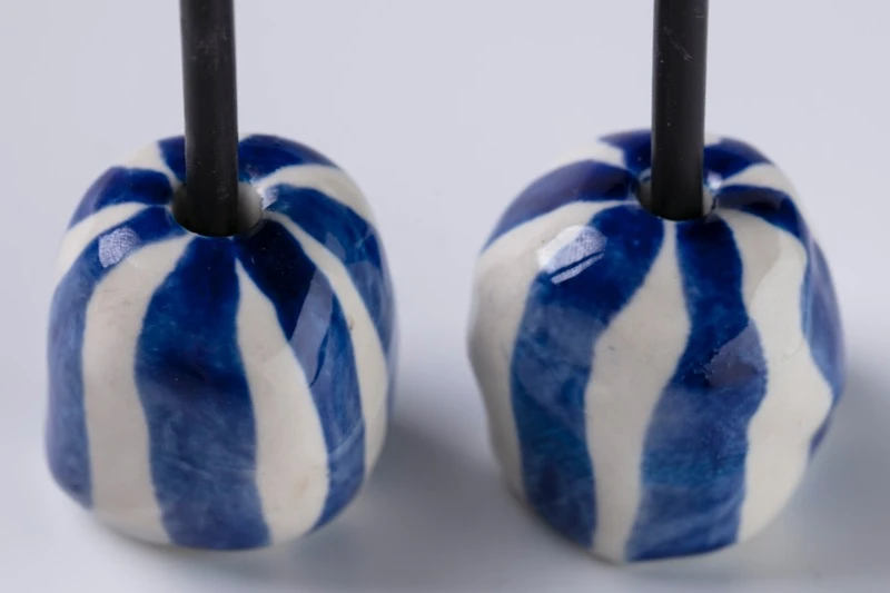Пара подсвечников под тонкую свечку в неравномерную полоску