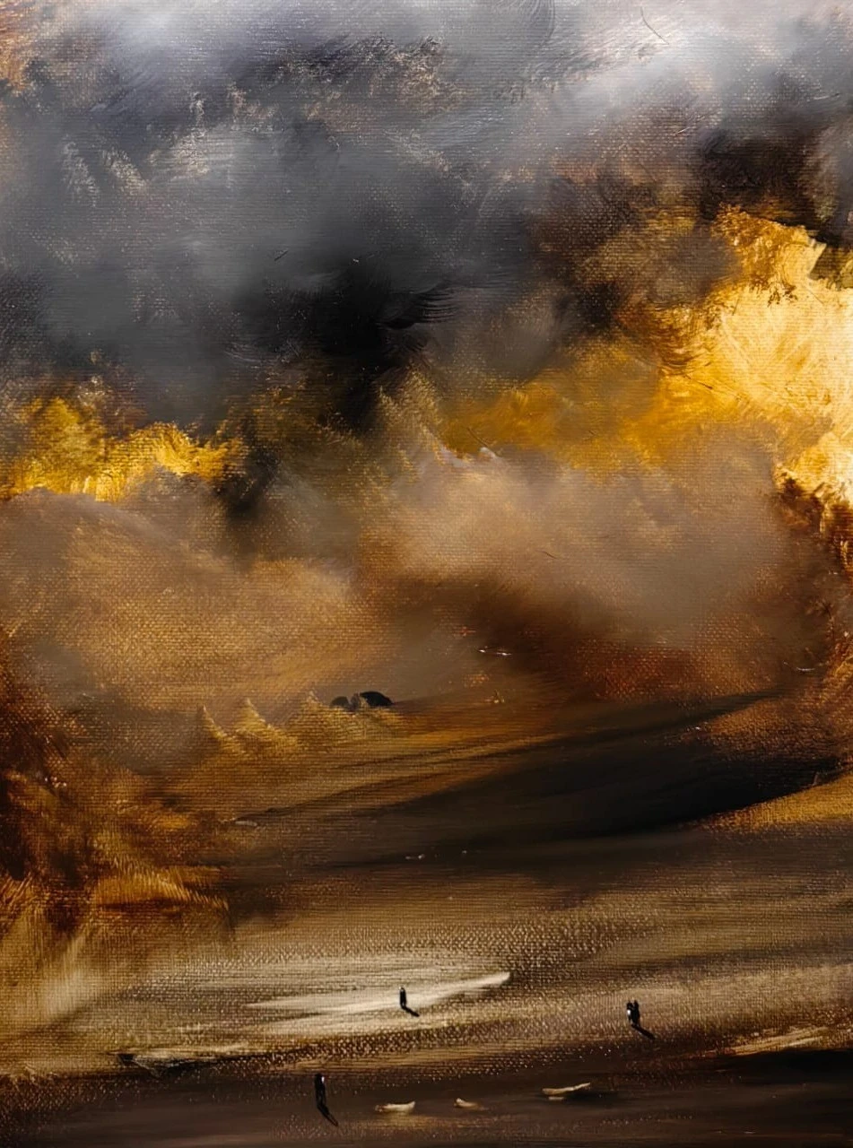 Мир Даниила Архипенко — это большая природная стихия, которая отсылает нас к ощущению периода Романтизма. В тот момент человек был противопоставлен ей как соразмерный и бросающий вызов, однако люди Даниила Архипенко безмерно малы перед природным космосом. Они обезличены, превращены в силуэты. Из героя, индивидуальности человек в работах художника превращается в наблюдателя. Это, безусловно, важная роль для процесса жизни, но отличная от той, что предлагает нам Романтизм. Неоявь — это зыбкий отпечаток реальности в сознании этих небольших человечков, которые говорят об объективности в случае если увиденное ими не является индивидуальным, но коллективным.