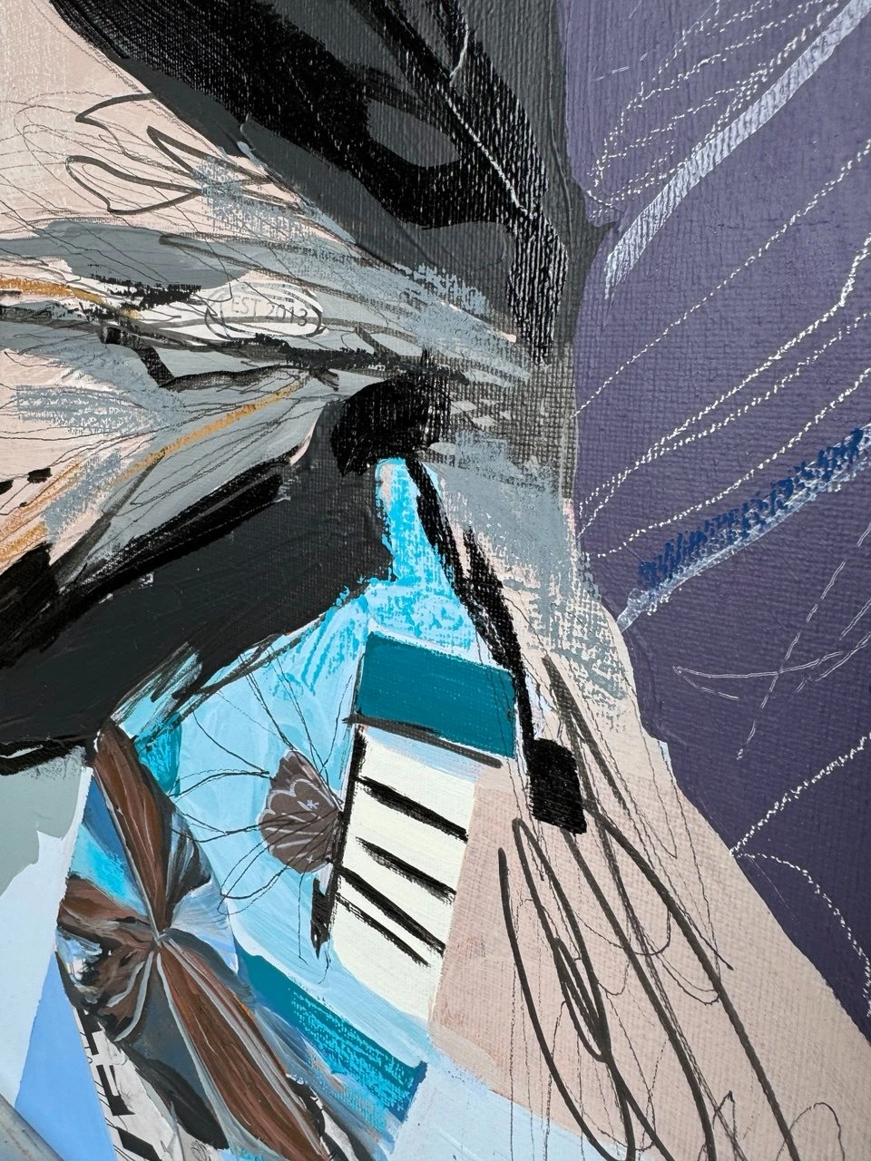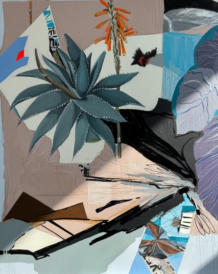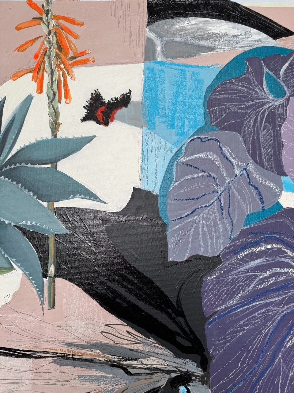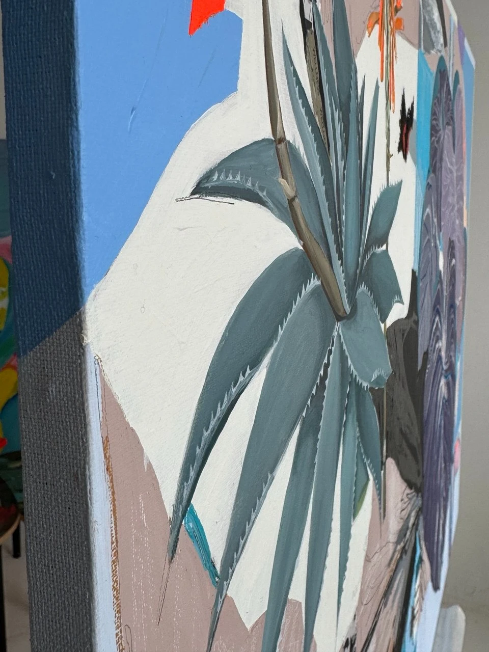 Цветок в центре каждой композиции задает не только цветовой, но и смысловой тон работы: в своих работах: я изображаю мамин физалис, бабушкин алоэ, лотос, который сфотографировала подруга. Сформировав коллаж, перевожу его в живопись. Так «склеенные» обрывки обрывки воспоминаний и впечатлений соединяются в целостном, неделимом образе.