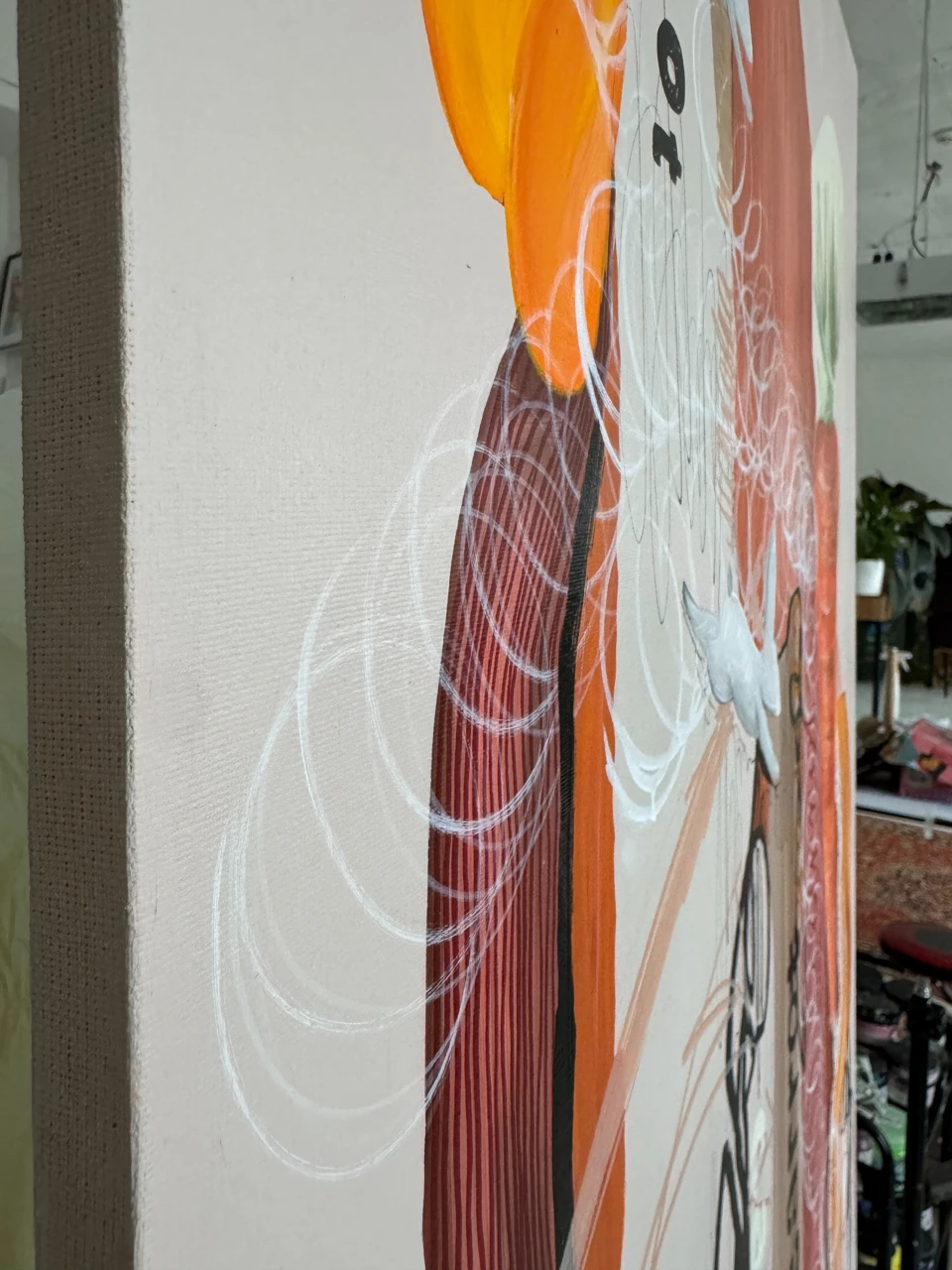 Торцы подрамника аккуратно прокрашены, картина может висеть без рамы.