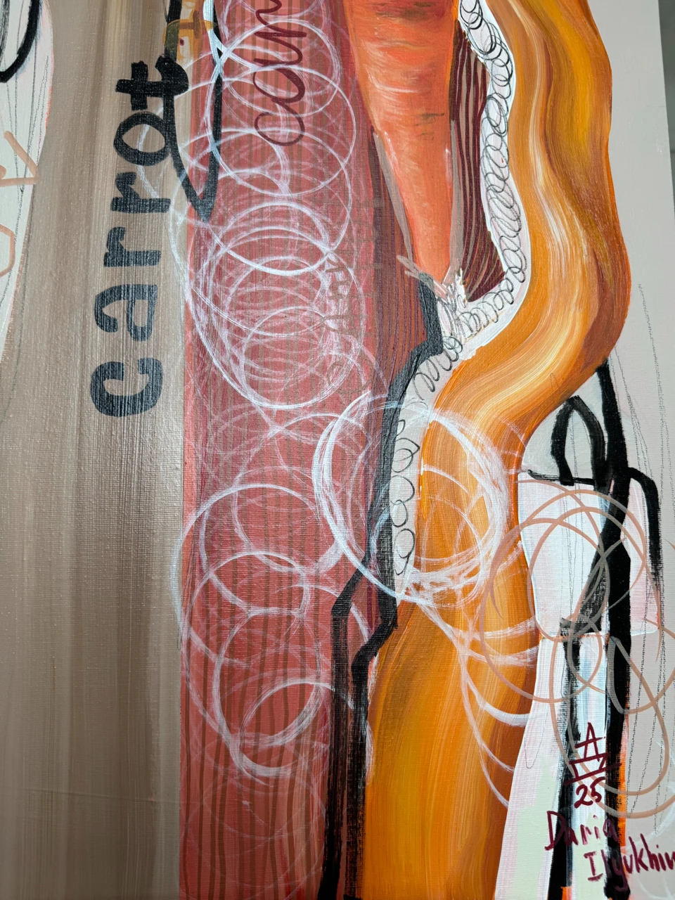 Слоистая структура, пересечение жестов, текста и образа создают ощущение маршрута, где линии не ведут напрямую, а блуждают, возвращаются, сбиваются. Мечта в этой работе не обещание, а процесс — хрупкий, неравномерный, требующий движения несмотря на неопределённость.