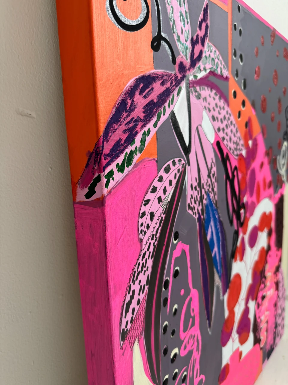 Работа выполнена на холсте, который натянут на подрамник толщиной 3,5 см. Торцы картины аккуратно прокрашены и ее можно повесить без рамы.