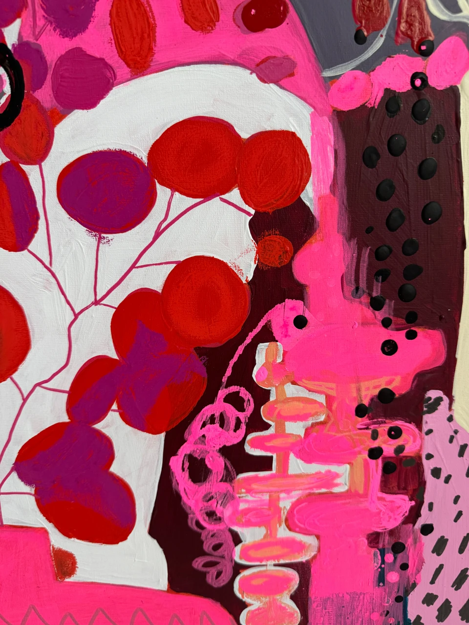 Я работаю в технике коллажа: соединяю случайные фрагменты фотографий и текстов, собирая их в эмоциональное высказывание. Я не даю своим работам однозначной интерпретации — каждый может видеть в них своё: любовно-символические знаки, человеческие образы или просто любопытный гербарий. Цветок в центре каждой композиции задаёт не только цветовой, но и смысловой тон. Это мамин физалис, бабушкин алоэ, лотос, который сфотографировала моя подруга. Сформировав коллаж, я перевожу его в живопись. Так «склеенные» обрывки воспоминаний и впечатлений соединяются в единый, цельный образ.