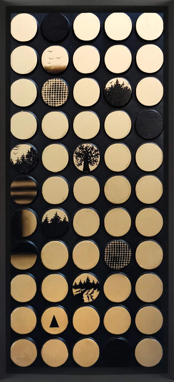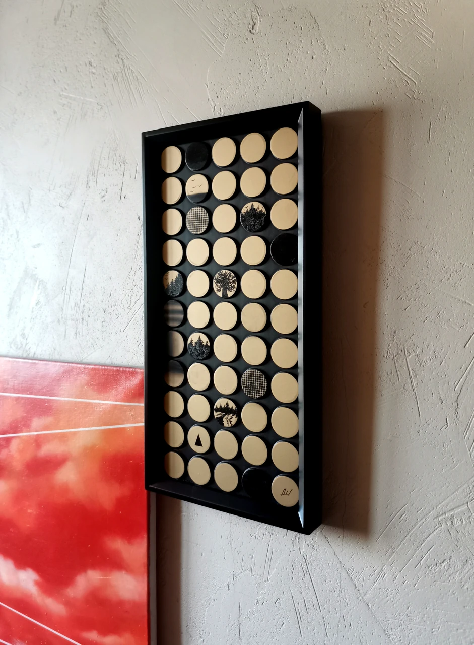 Работы из серии «KOYAANISQATSI. V1 ФОРМУЛА РАСПАДА» созданы на дубовом шпоне. Серия вдохновлена одноименным документальным фильмом режиссера Годфри Реджио. О взаимодействии природы и человека, о разрушении для перерождения, о состоянии жизни, которое диктует новые условия существования. Выставлялись в Attolini gallery, СПб, 2024.