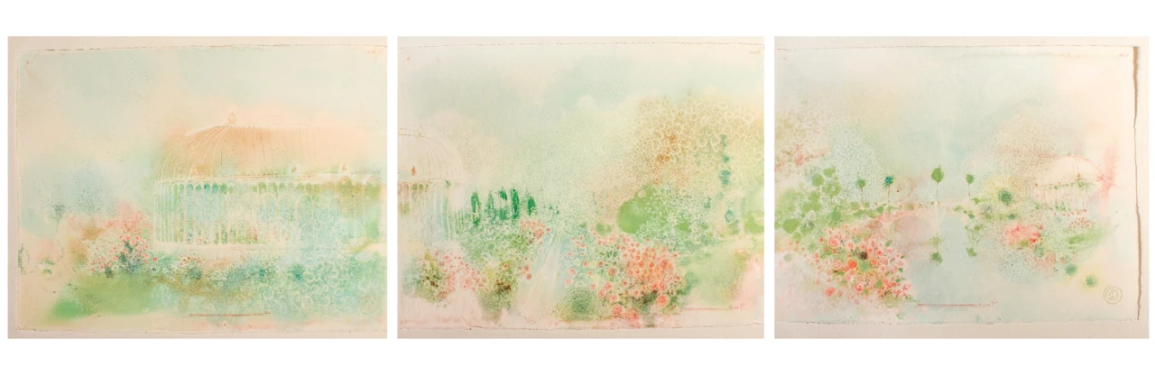 Триптих. Общее впечатление о работе состоит из трех отдельных работ. Ботанический сад, растения. Прозрачность воздуха. Нежность света и цвета.