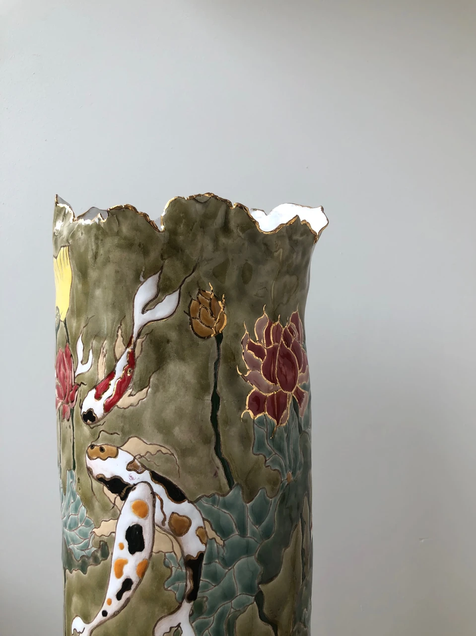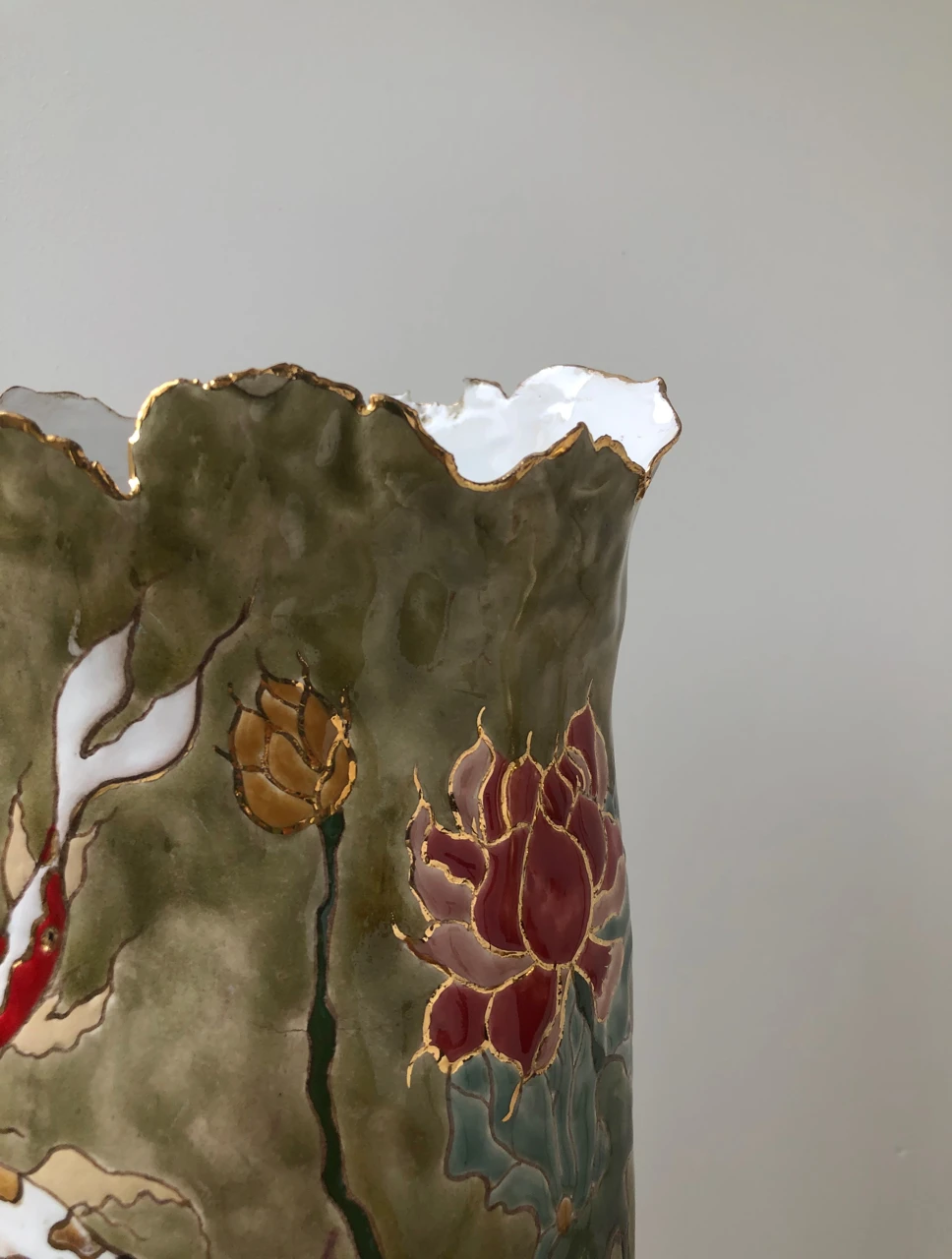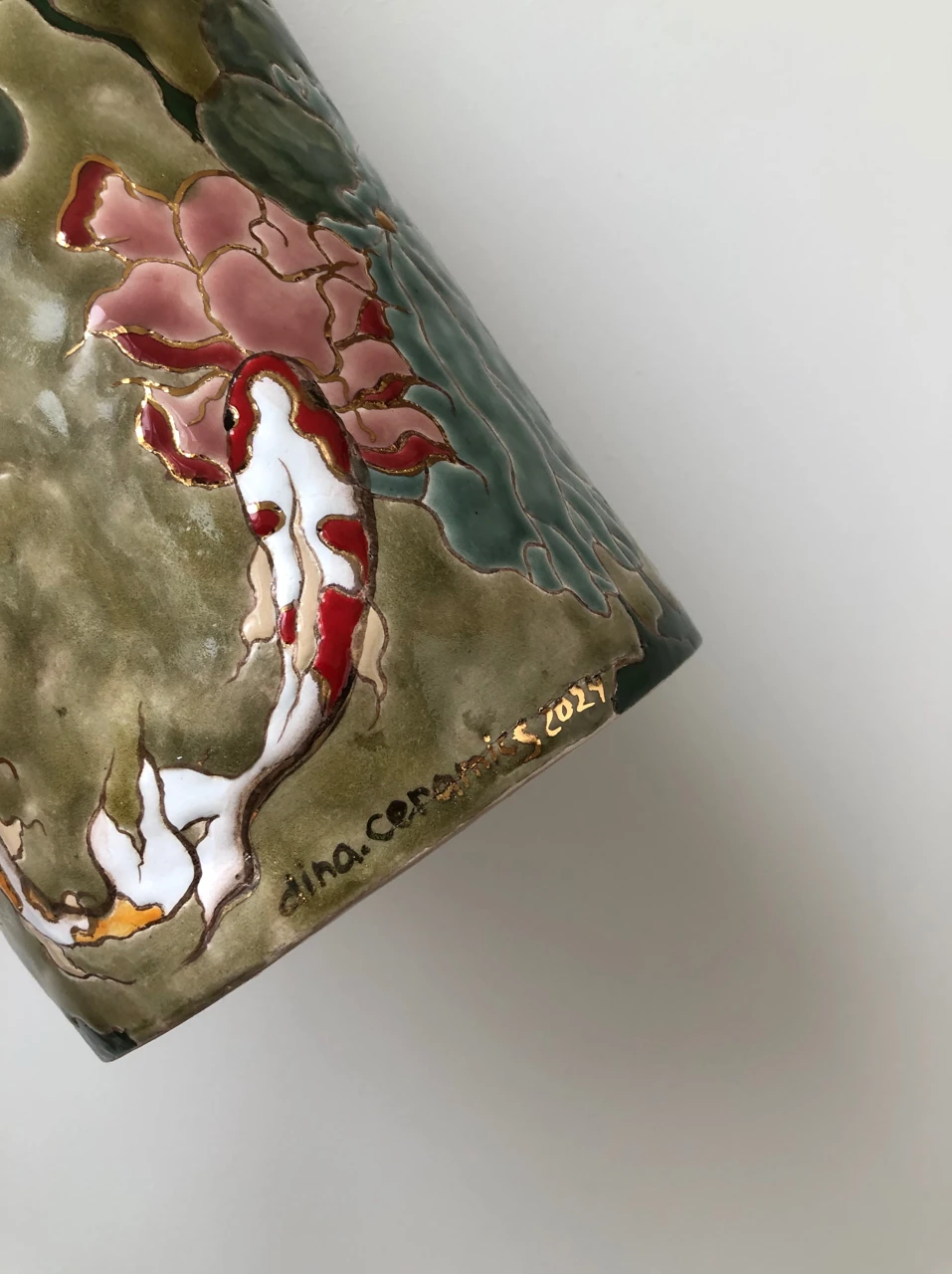Ваза прошла три этапа обжига: утильный - 1100 градусов , глазурный - 1050 градусов , золотой - 800 градусов.