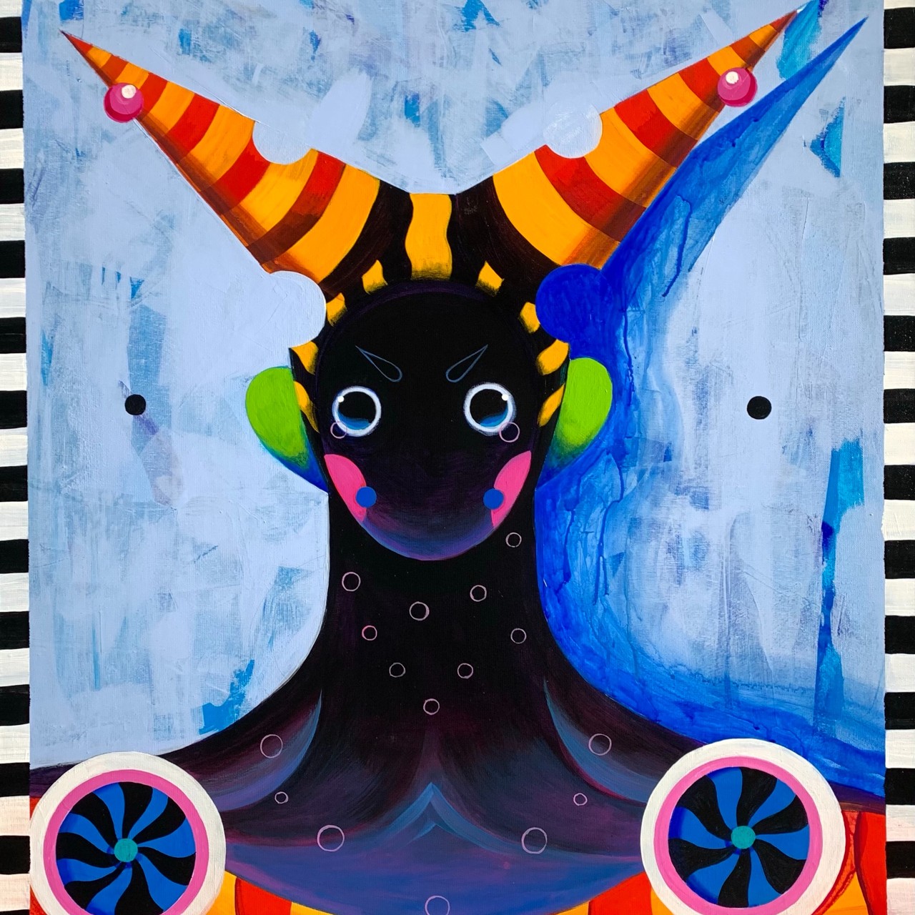В своей живописи Дмитрий исследует самые глубинные человеческие эмоции и чувства, затрагивает темы внутренней утраты, поисков и исцеления через воображение. Свободно оперируя осознанным и бессознательным, он создает уникальных существ. Они пришли не пугать, как может показаться на первый взгляд, а защищать и быть рядом, служить проводниками и помогать вернуть потерянное, обрести умиротворение.
