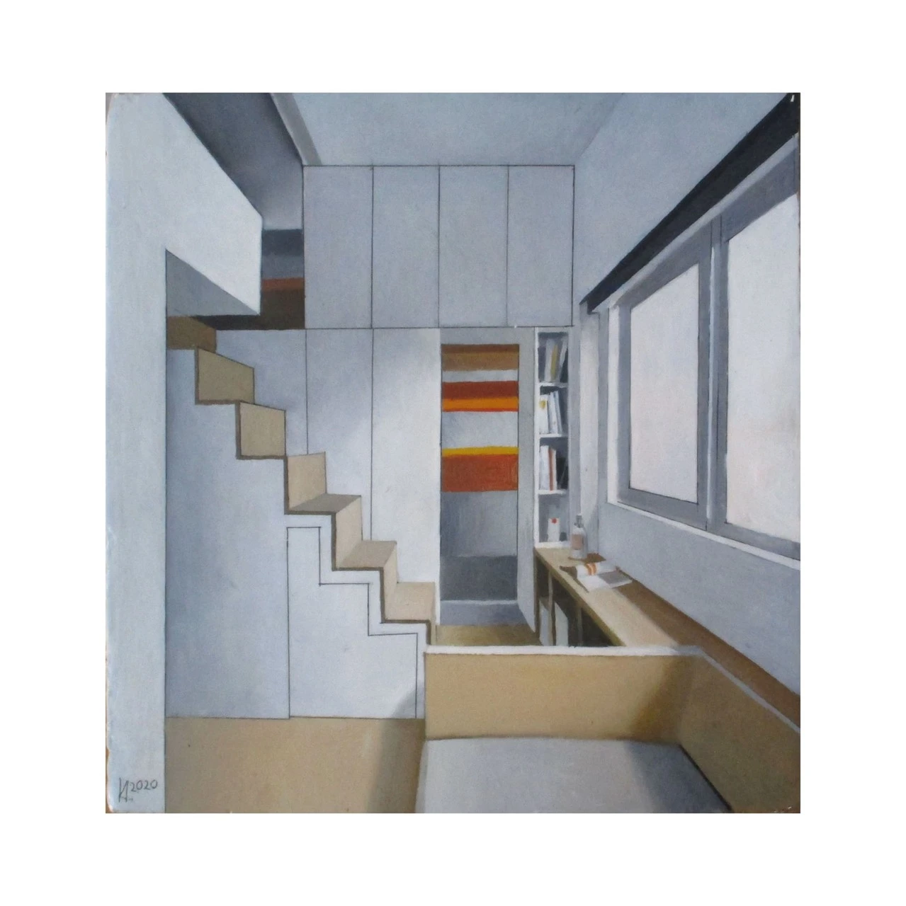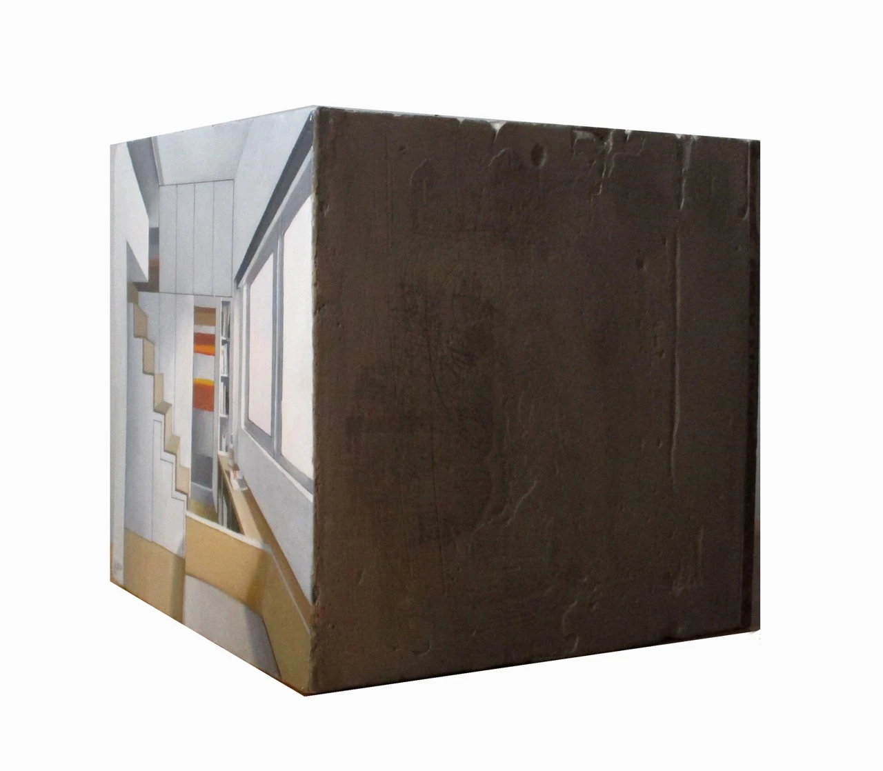 Обратной стороной живописной серии работ «Не жизнь, а сказка» стала мысль реализовать в художественной форме идеи архитекторов XX-XXI веков о необходимом, а значит минимальном, пространстве для жизни человека. «Ячейка» понимается мной как абсолютный минимум, она решена в форме куба и сделана из бетона, как наиболее распространённого и недорогого материала для жилого строительства. На одной из граней каждого куба изображена комната, а зачастую и все жилье целиком, с одним окном, спальным местом и пр.