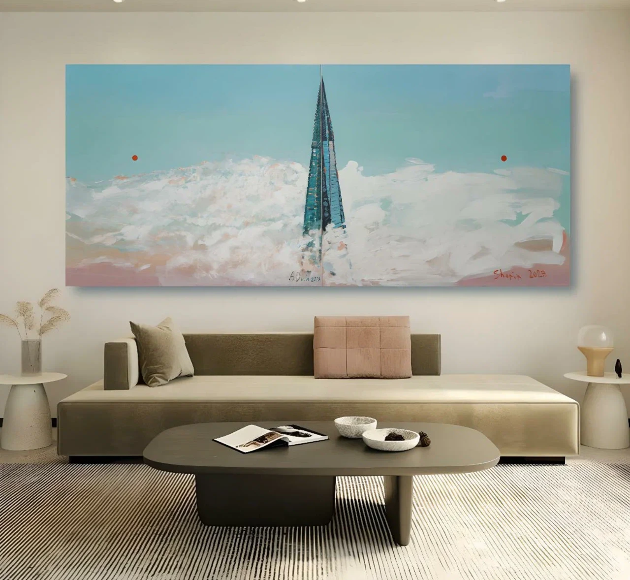 Картина «Aurora» или «Утренняя заря» переносит нас в мир светлых ожиданий и бескрайних горизонтов. Вершина, устремленная ввысь, символизирует стремление к величию и бесконечным возможностям. Между реальностью и мечтами появляется яркое пятно — символ надежды, эфемерной, как утренняя заря. Аура, соединяющая два мира, напоминает о движении и начале, о том, что между моментом и вечностью. Мы находимся в центре того, что начинается и что уже прошло, в поисках света, который всегда ведет вперед, в мир, где мечты и реальность переплетаются в одно целое.