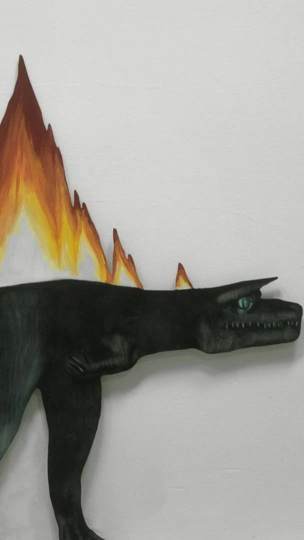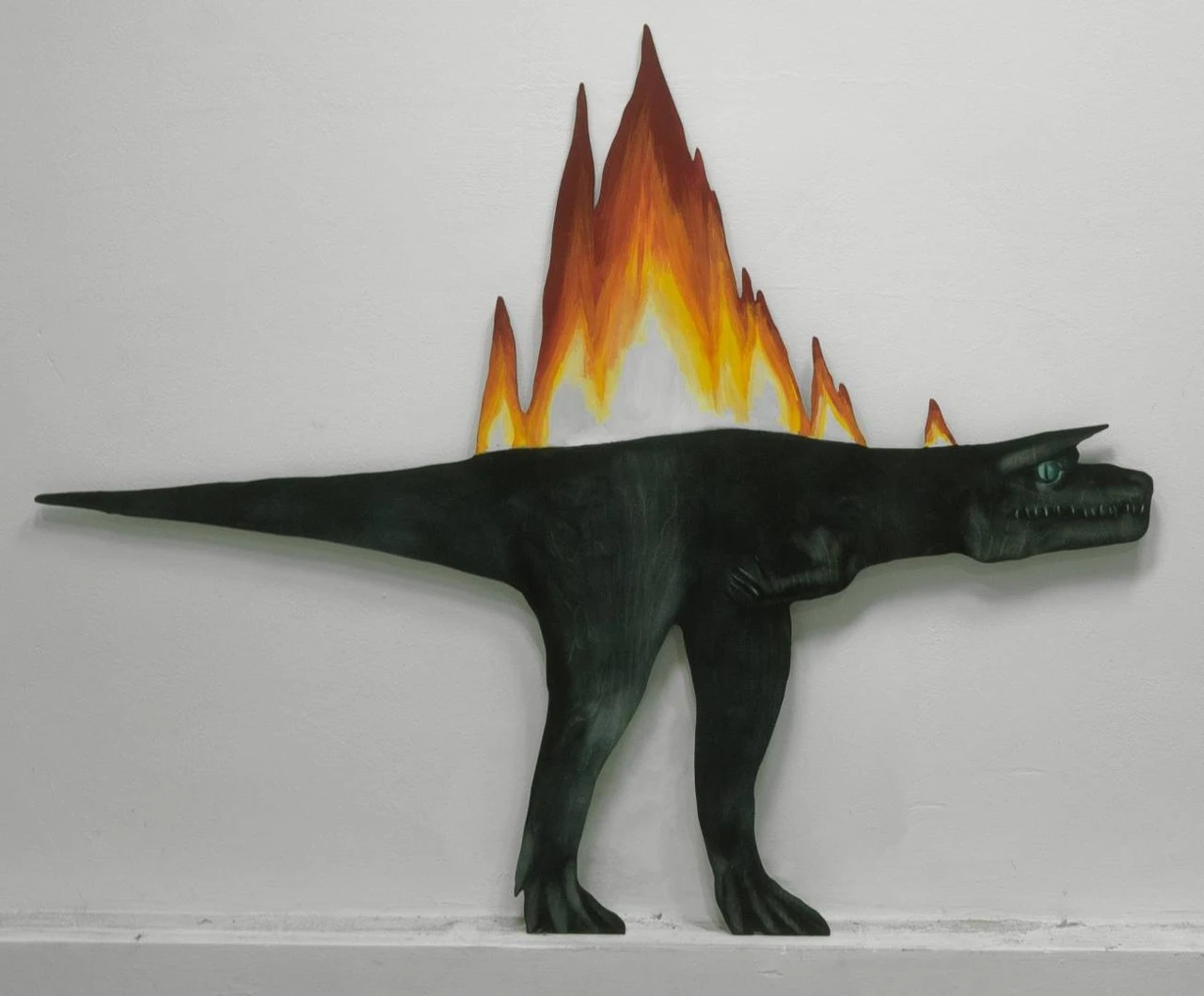 Проект о том, как динозавры сгорают от метеоритного огня. Существа, застигнутые огнем в своем спокойном и цельном мире.