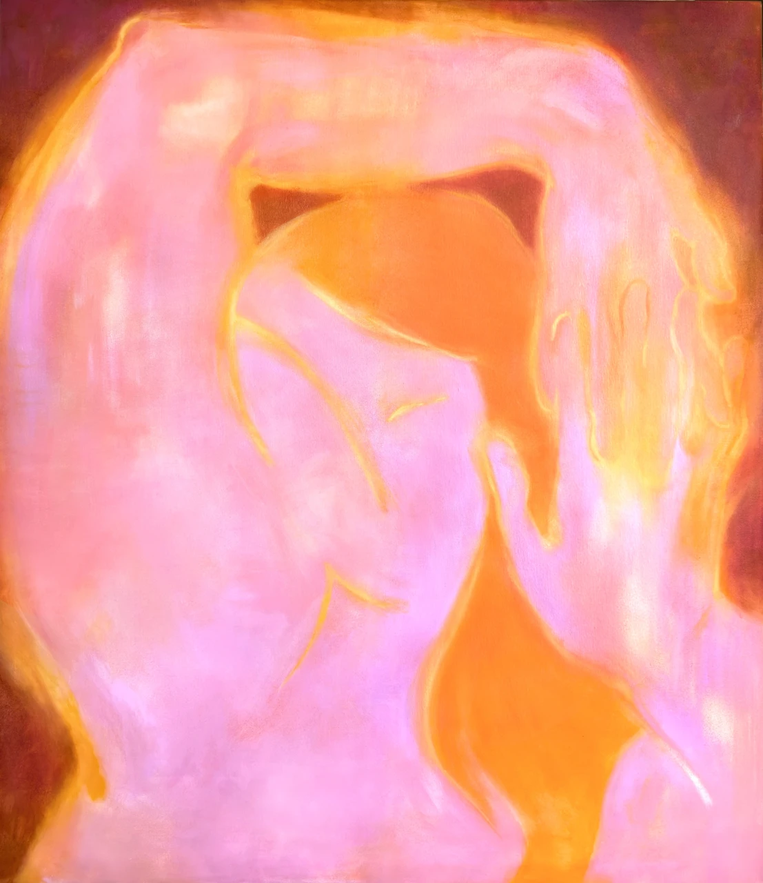 Работы продолжают сложивший визуальный язык, с помощью которого я передаю состояния и эмоции людей: условная форма, насыщенные открытые цвета. Но также в этих работах появляется ощущение света и ауры, которые заместо использованных ранее контуров окружают фигуры. Эта цветная световая аура становится ещё одним символом силы, раскрывающую мысль о том, что гармония и уверенность внутри распространяется и на ближайший окружающий мир, на людей, на быт, на восприятие мира вокруг, согревая и освещая не только свою жизнь, но и людей, вступающих в контакт.