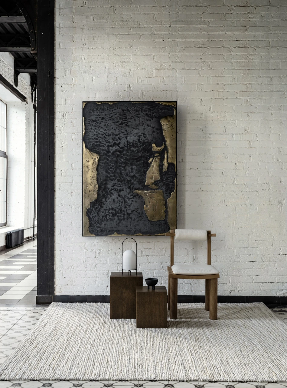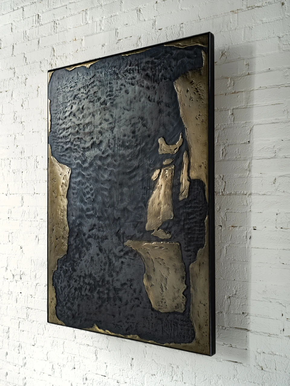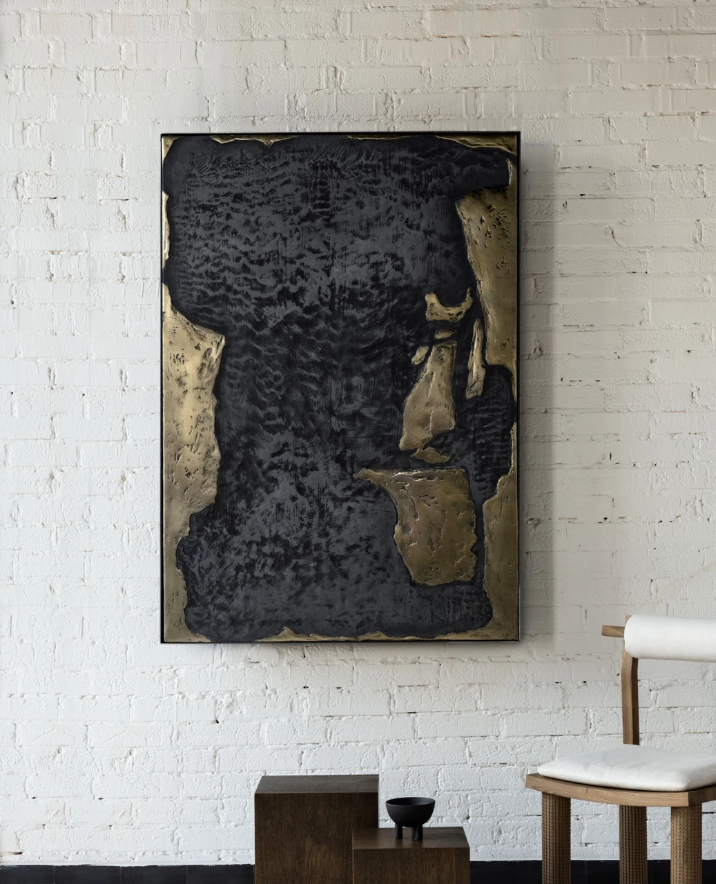 Серия скульптурных панно «BLACKGOLD» создана для интерьеров, где искусно подобранные детали сплетаются воедино, даже если они противоположны. Темные матовые участки работы гармонично вплетены в играющую светом латунь.