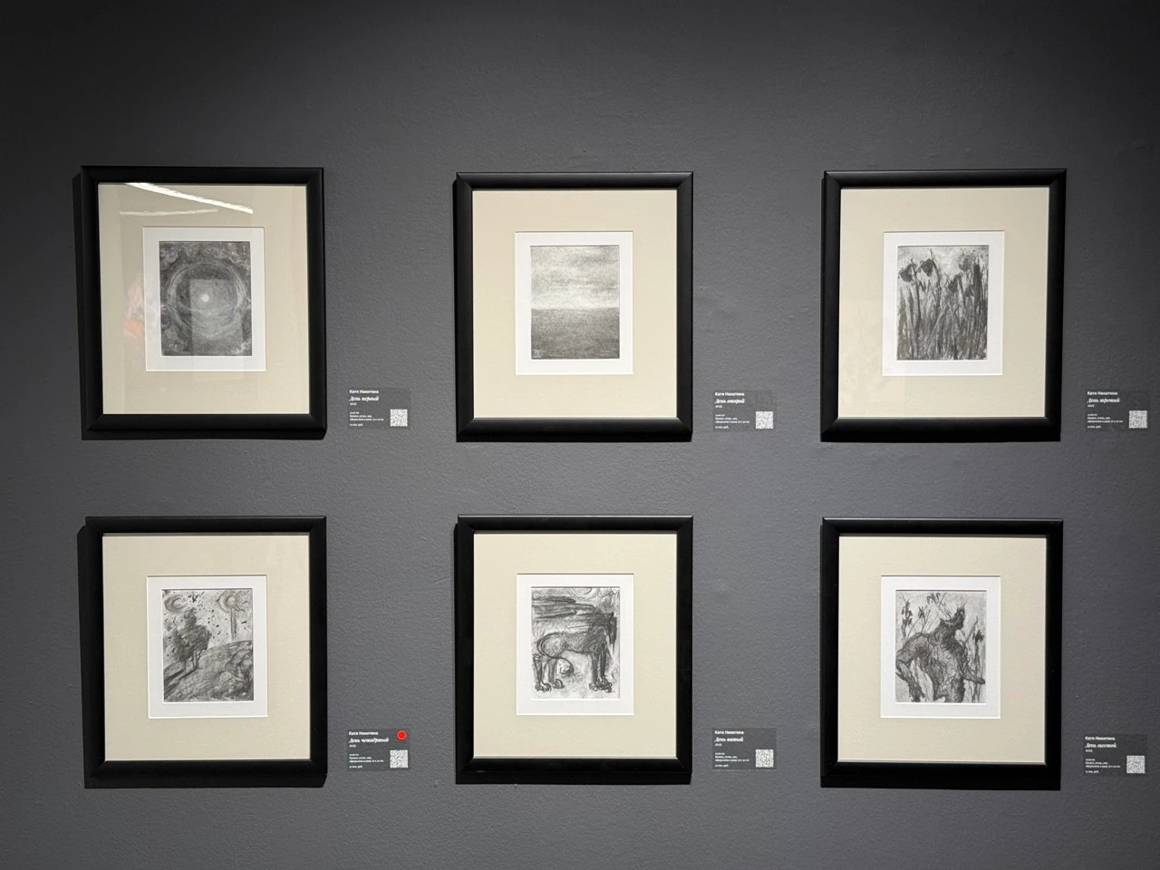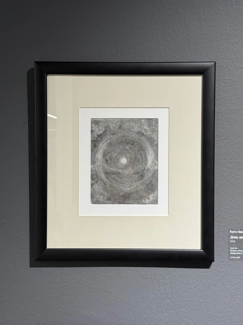 Из серии «Шесть дней творения» На шести работах графики предстает акт шести дней творения, из книги Бытия. Уголь как плод угасшего сада, напоминает о природной хрупкости.