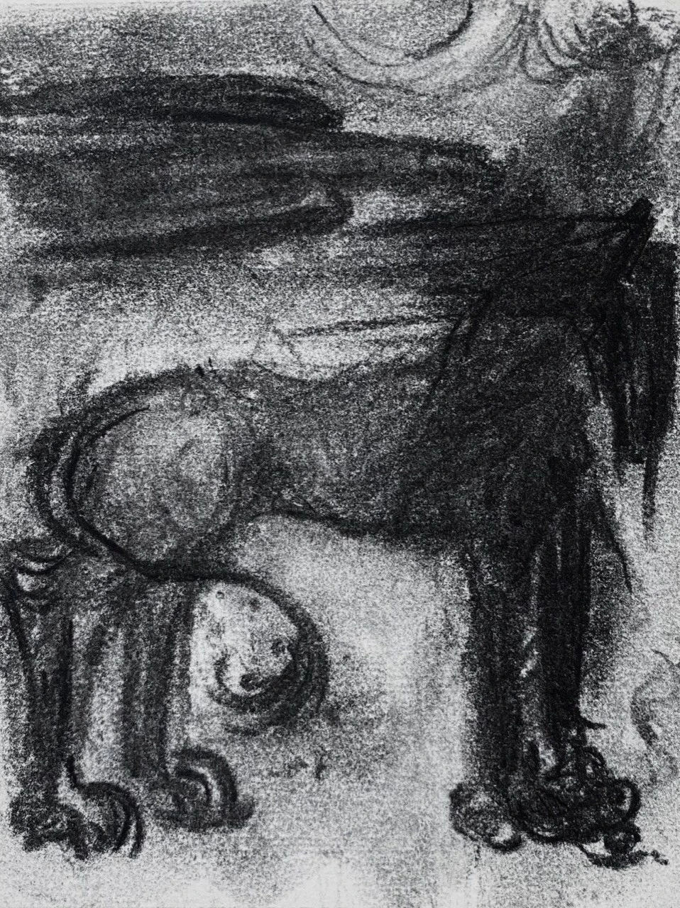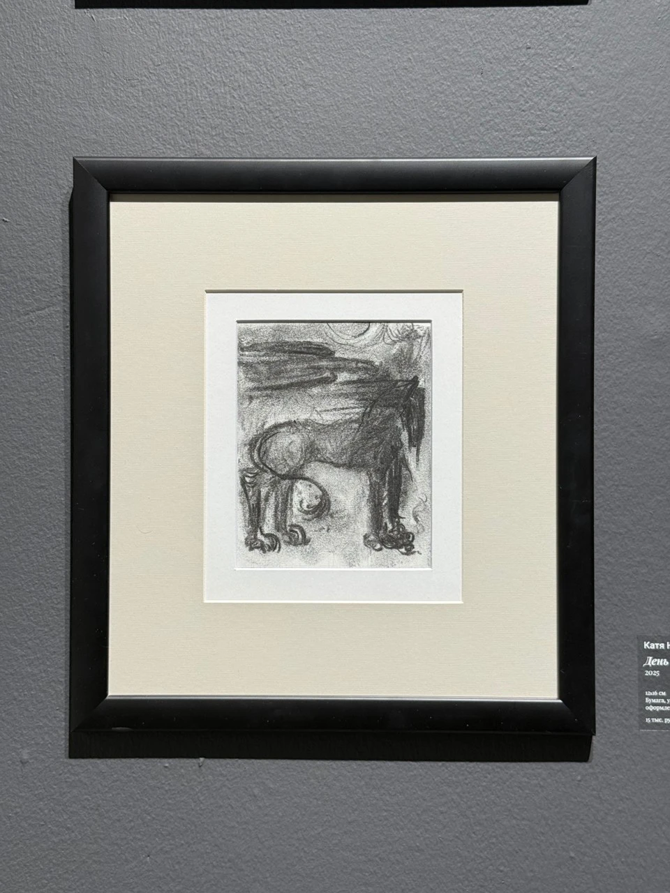 Из серии «Шесть дней творения» На шести работах графики предстает акт шести дней творения, из книги Бытия. Уголь как плод угасшего сада, напоминает о природной хрупкости.