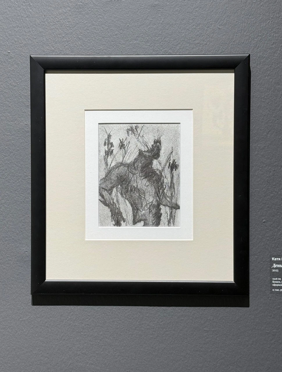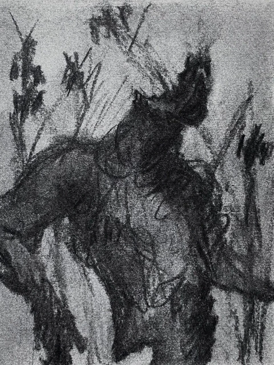 Из серии «Шесть дней творения» На шести работах графики предстает акт шести дней творения, из книги Бытия. Уголь как плод угасшего сада, напоминает о природной хрупкости.
