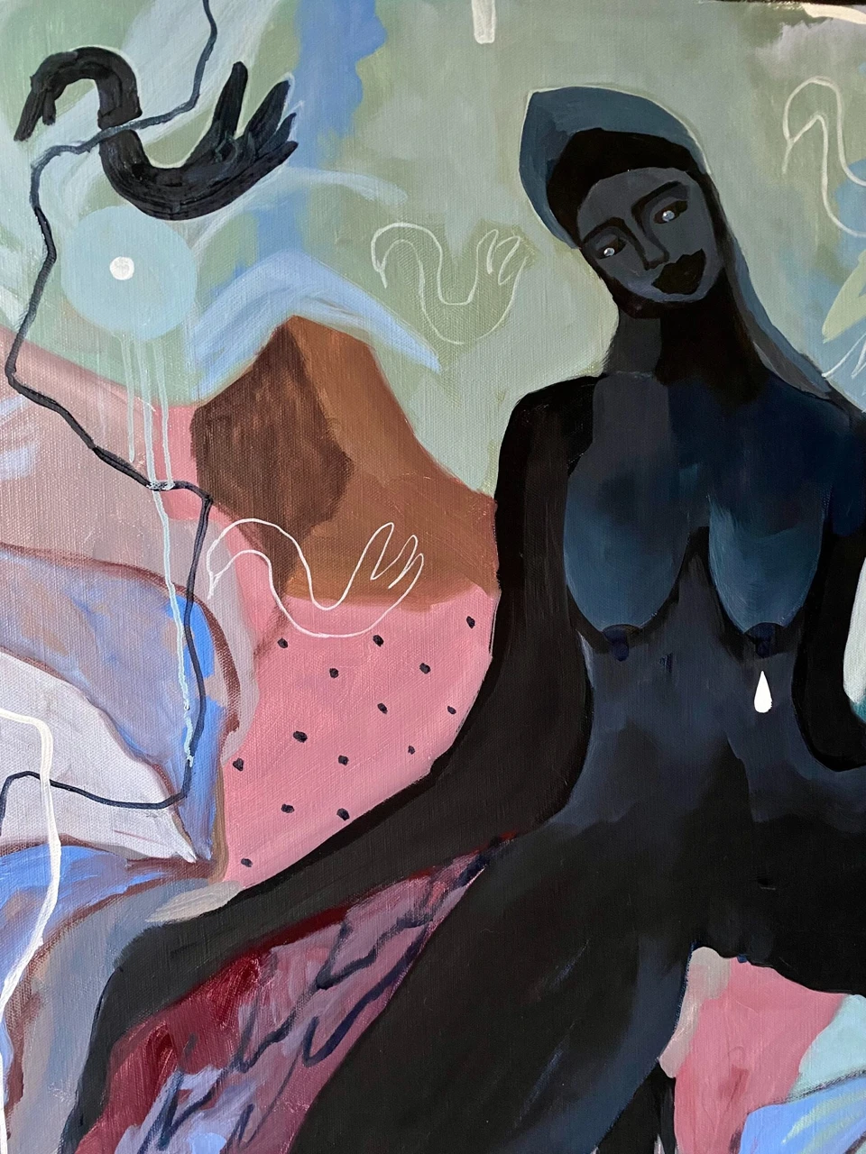 Я люблю переосмысливать сказки через фильтр собственной философии, в которой я даю жизнь этим историям, когда закрыта книга. Непохожая ни на кого Василиса в образе Чёрного лебедя находит своё место в мире благодаря доброте и искренности, вопреки своей непохожести на других.