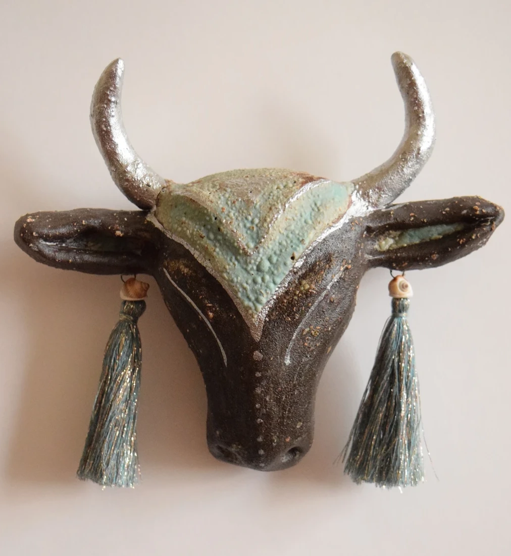 Серия «Луга земные, луга небесные» вдохновлена архитектурными элементами древних храмов Грузии, Армении, Турции. Образ коровы обращается к зрителю словно из древности.