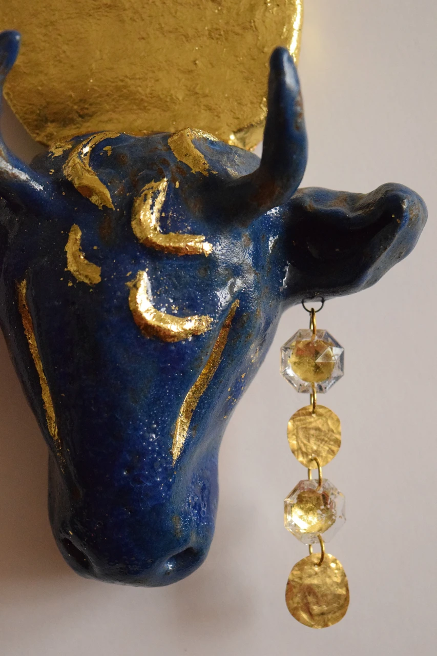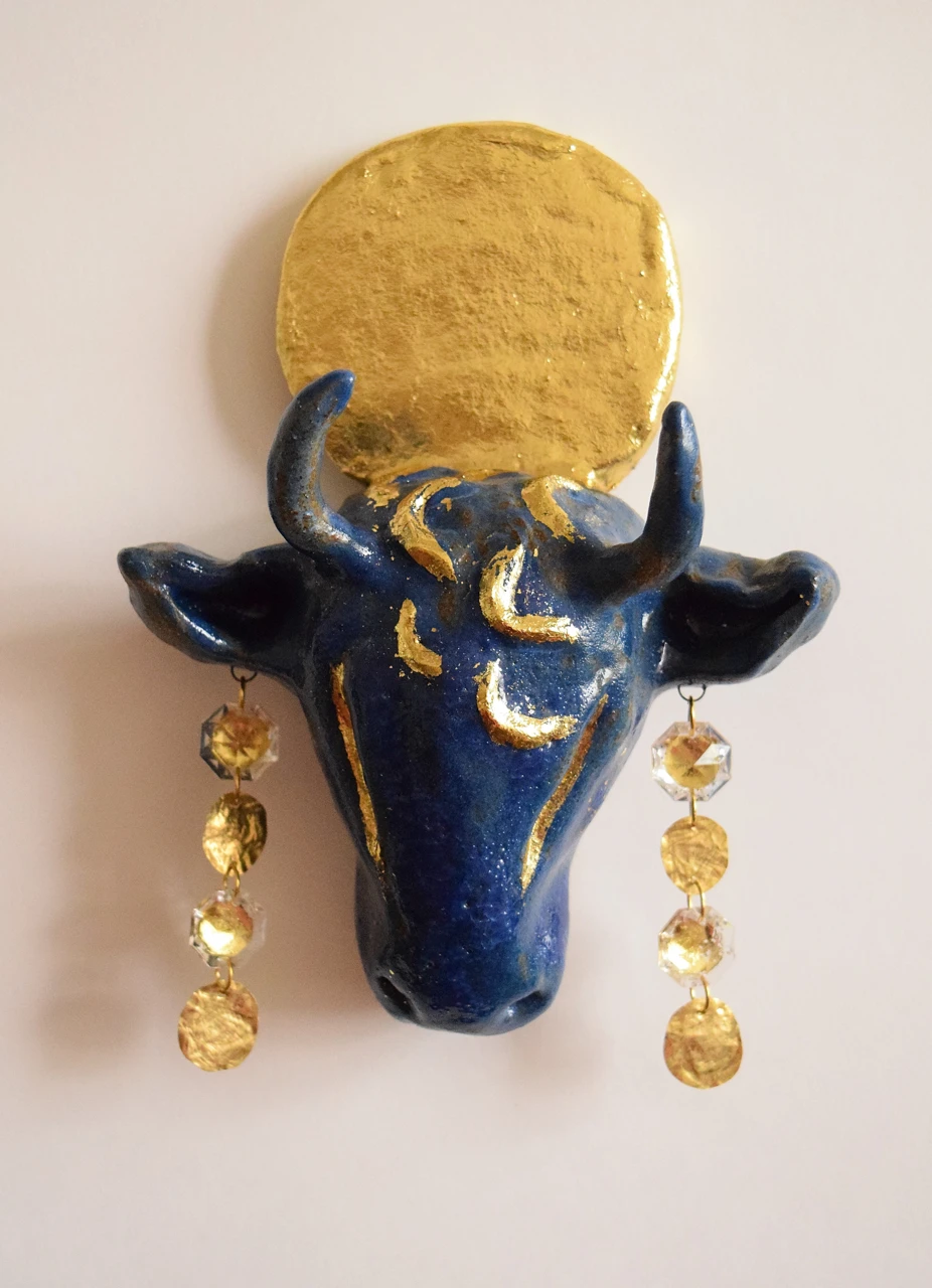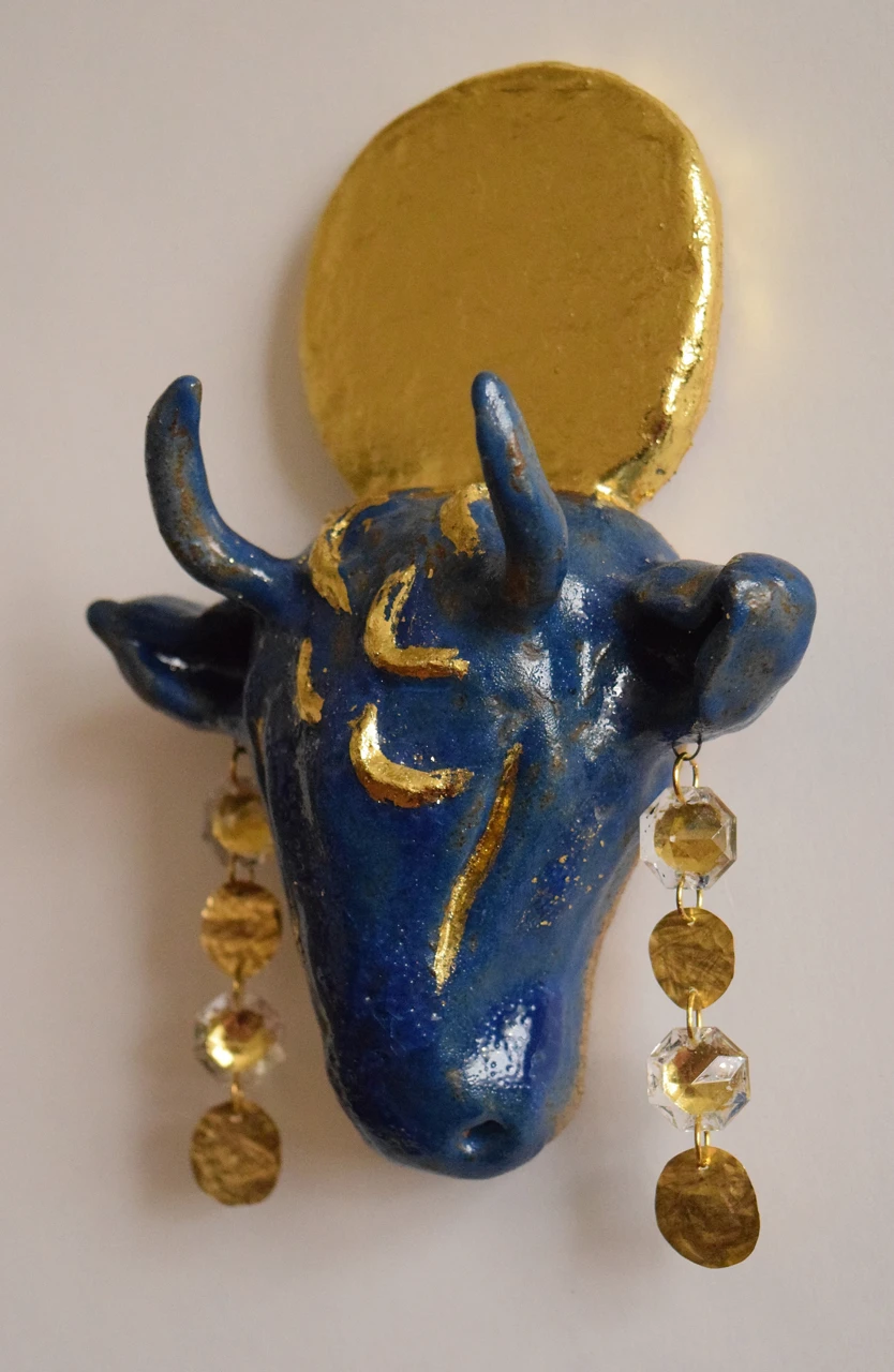 Серия «Луга земные, луга небесные» вдохновлена архитектурными элементами древних храмов Грузии, Армении, Турции. Образ коровы обращается к зрителю словно из древности.