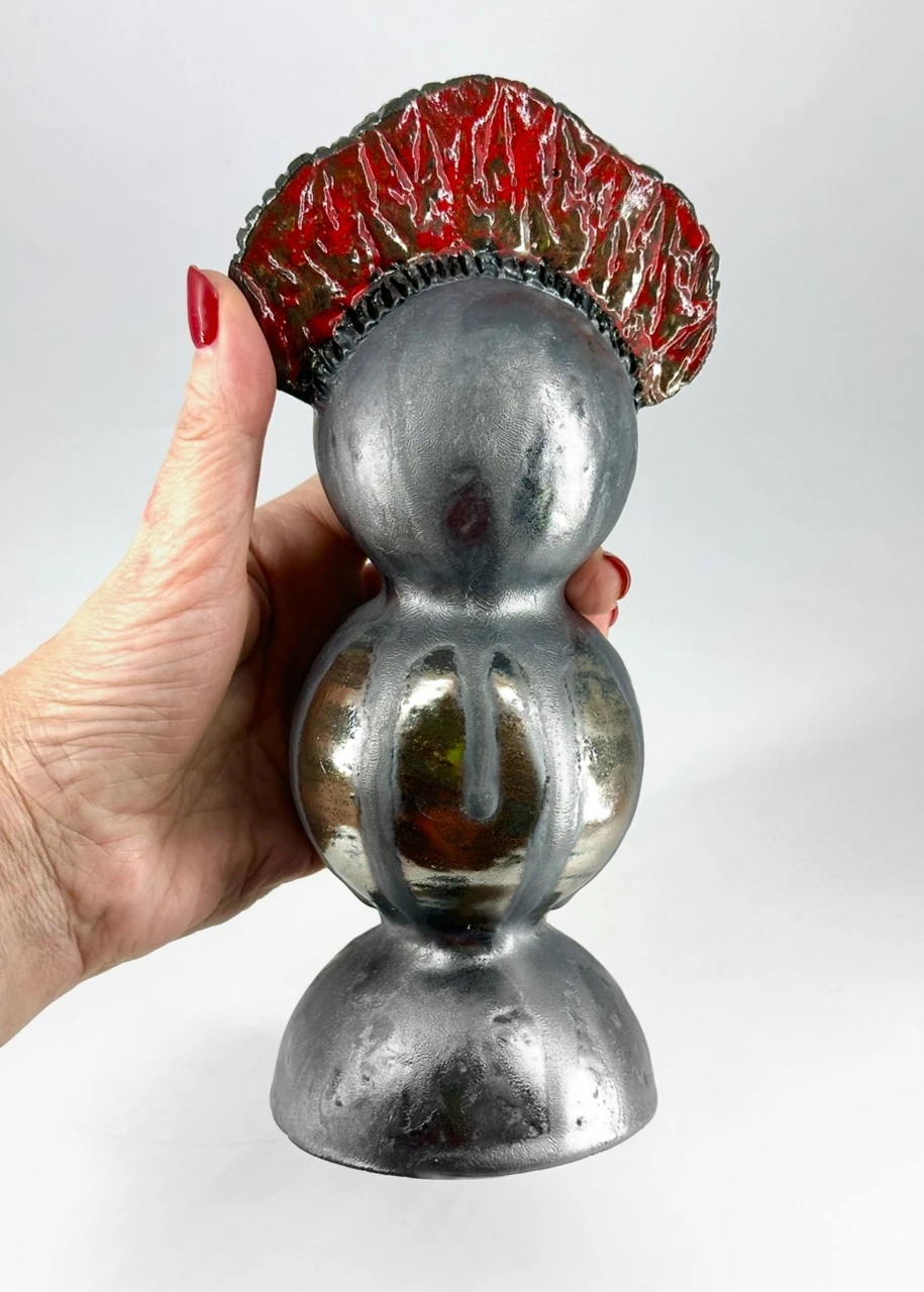 Небольшая керамическая скульптура "Матрешка в красном кокошнике", передает атмосферу русской народной культуры, сочетая в себе простоту и изящество. Кокошник, словно венец, венчает голову фигуры, добавляя ей величия и торжественности. Эта скульптура будет хорошим подарком.