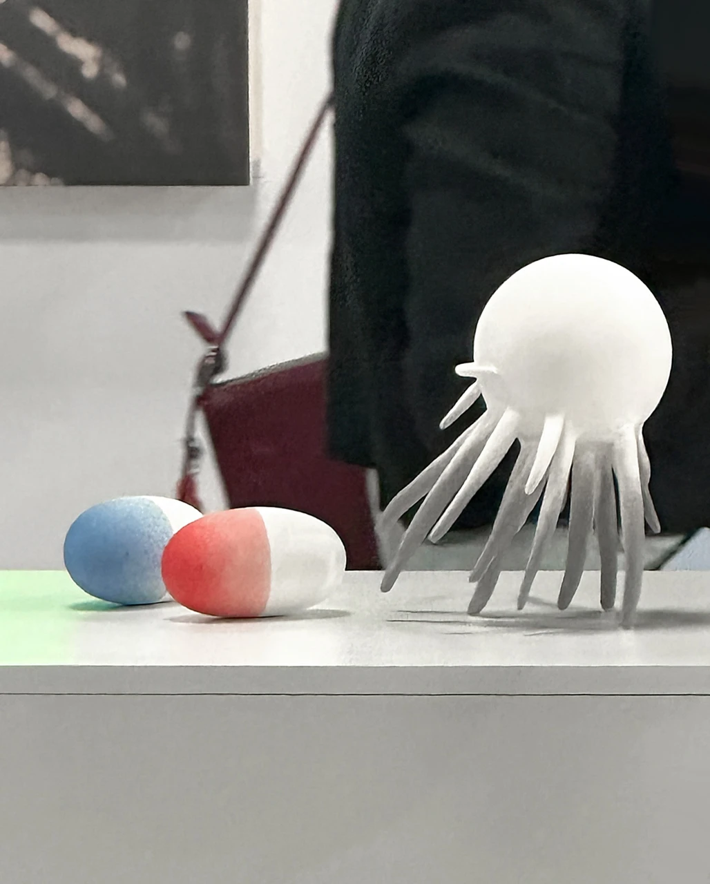 «Сны о будущем» это визуальное размышление о границах живого, искусственного и их возможных точках пересечения. Скульптуры отсылают к микробиологическим структурам, биоморфным объектам и артефактам из параллельной реальности, из снов.