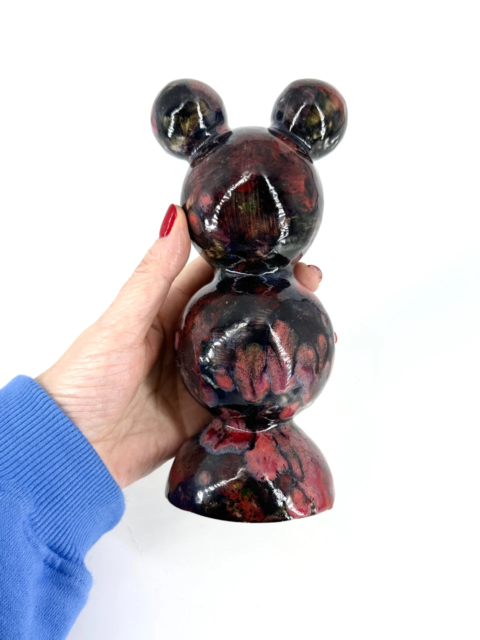 Небольшая скульптура Ушастый #2 сделана из керамики и несколько раз обожжена в печи с разными глазурями. Скульптура имеет гладкую поверхность с переливами черного и красного цветов, что придает ей особую и глубину. Эта скульптура (интерьерный объект) может быть хорошим подарком для любителей искусства и коллекционеров. Она не только украсит интерьер, но и станет предметом для обсуждения и восхищения.