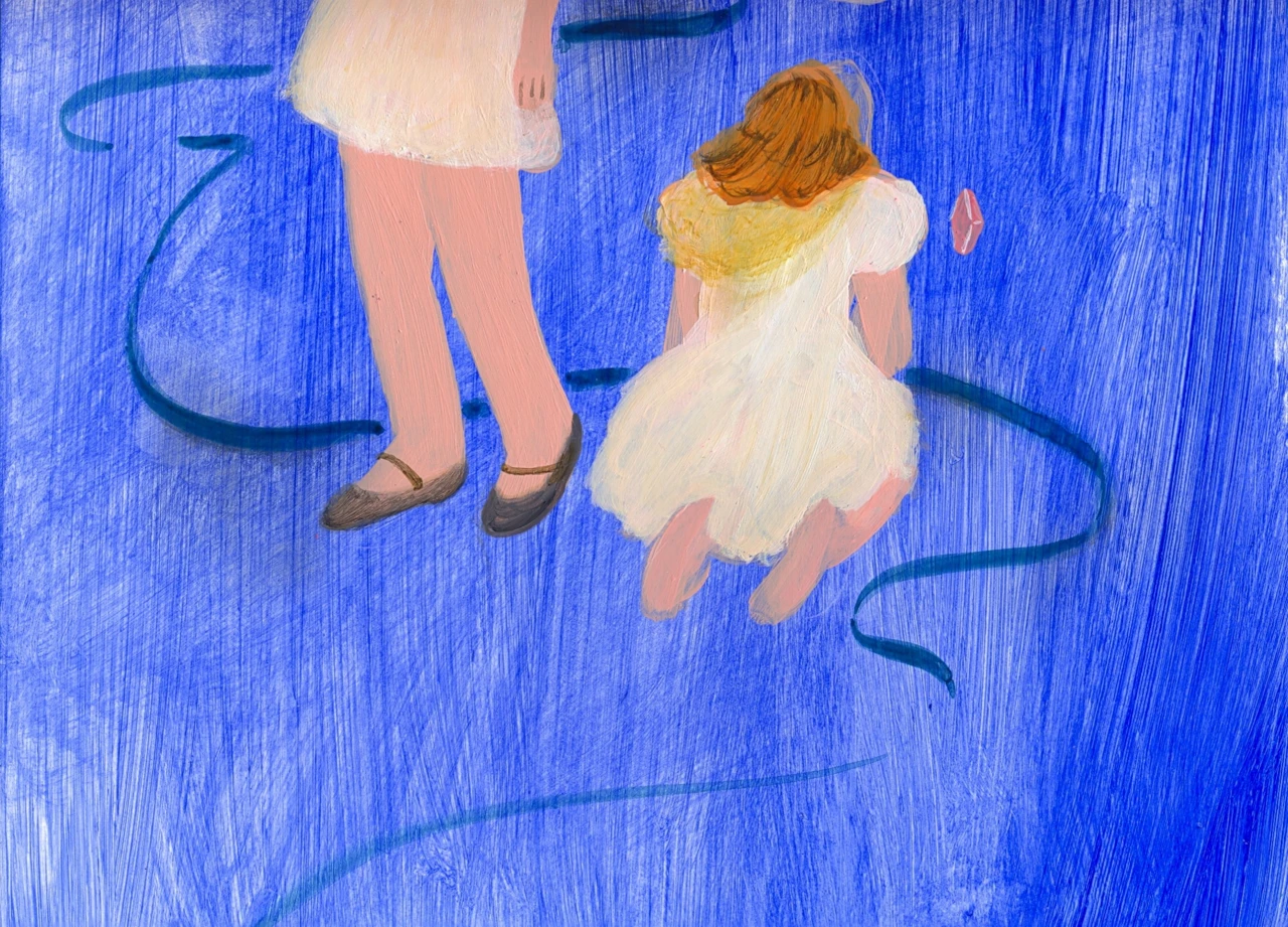Работа рассказывает о поиске сокровищ, когда они уже под ногами. Графика из серии Девочки.