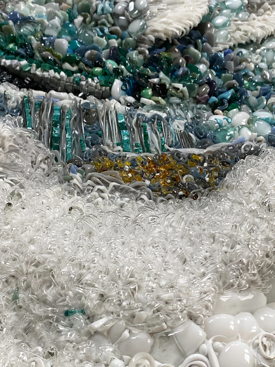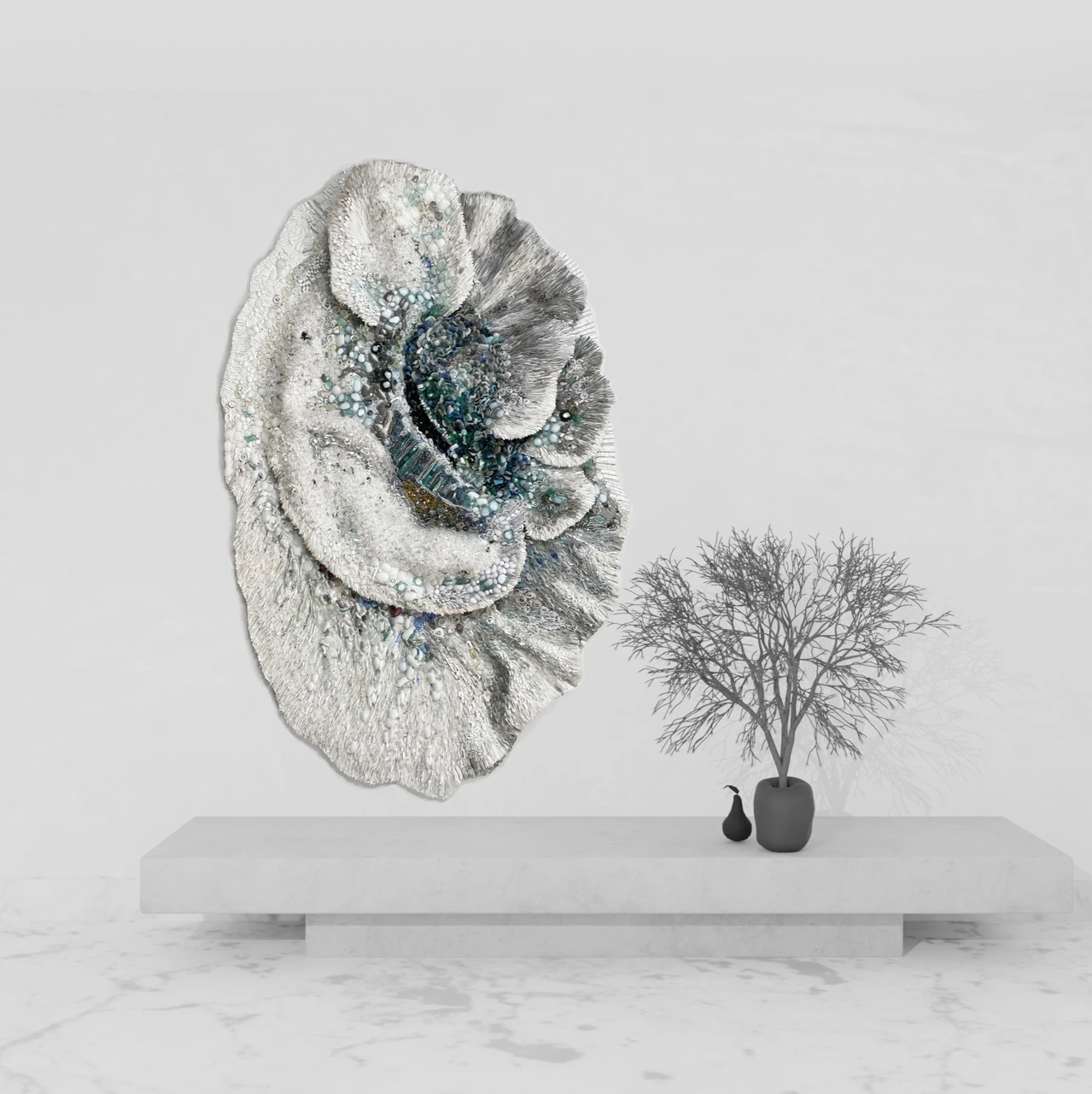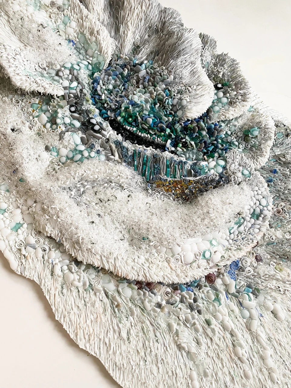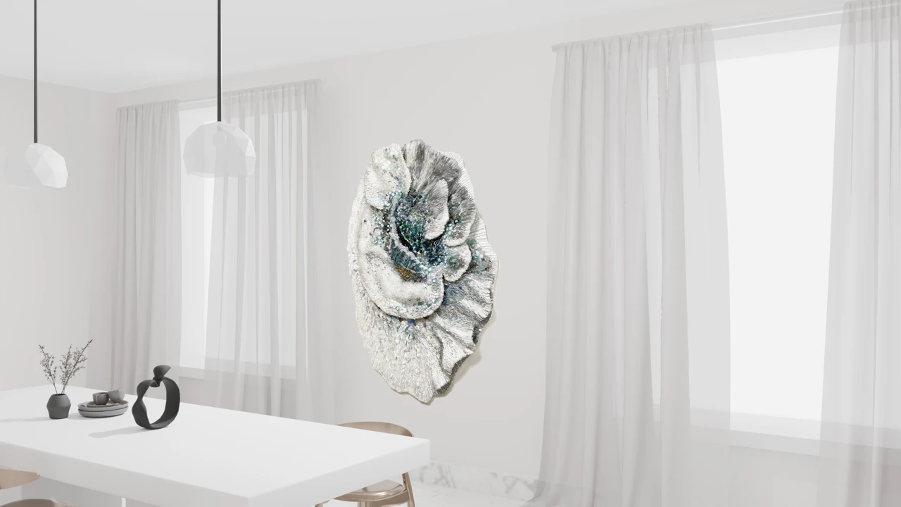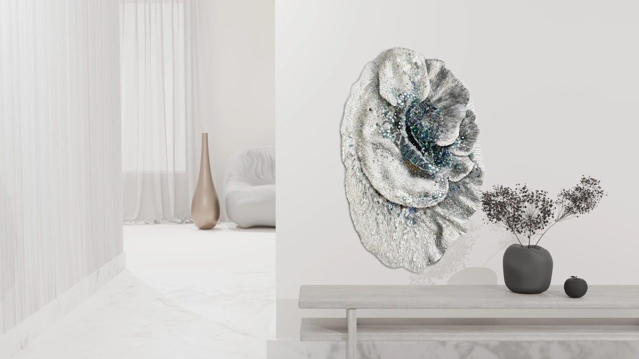 Панно из мозаики «Исчезновение» выполнено в авторской технике из стеклянных элементов, каждый из которых изготовлен вручную. Такая техника позволяет создавать сложные визуальные эффекты за счёт сочетания прозрачности и текстуры материала. «Исчезновение» — это о том, что в жизни всё меняется, всё исчезает, но в этом процессе остаётся только то, что действительно важно.