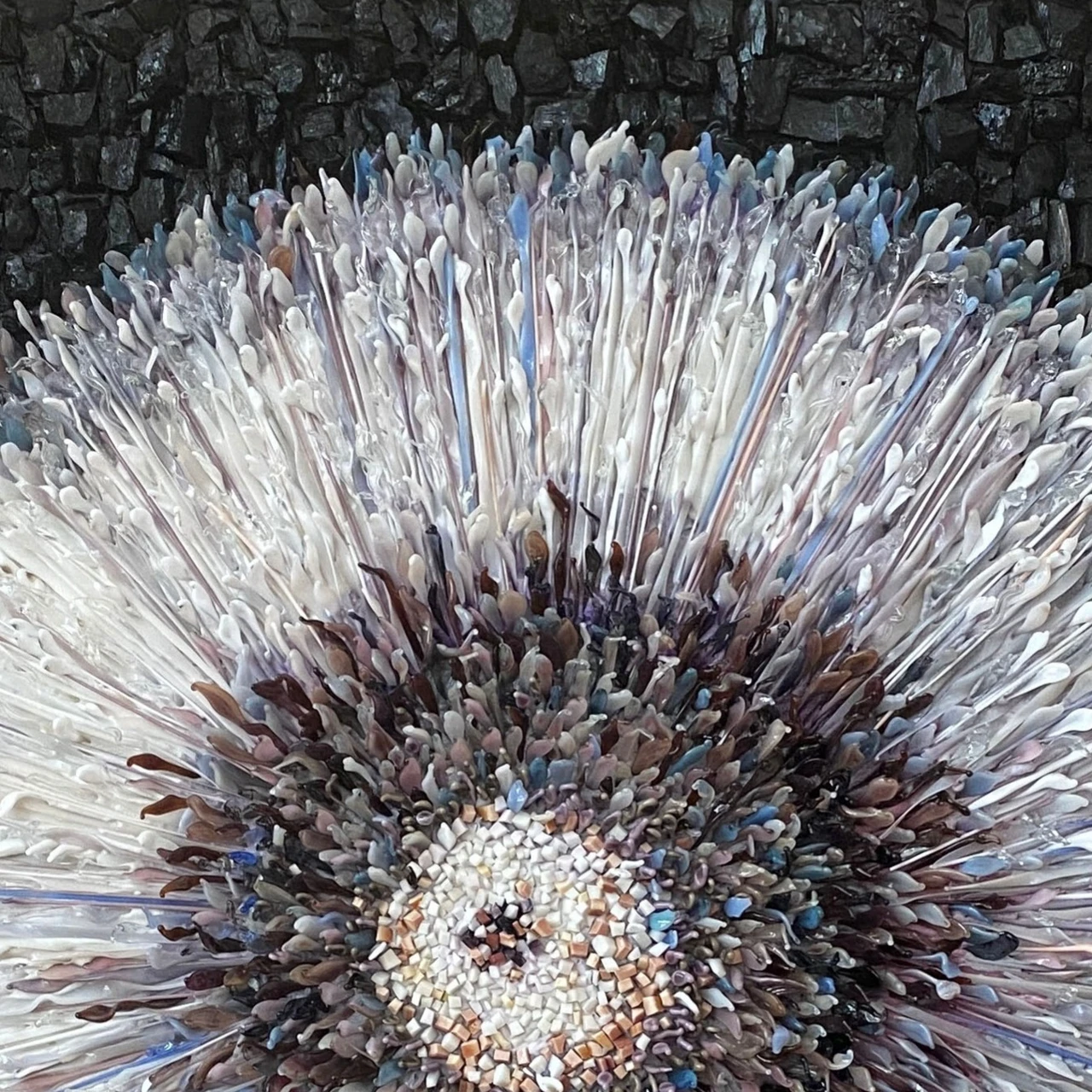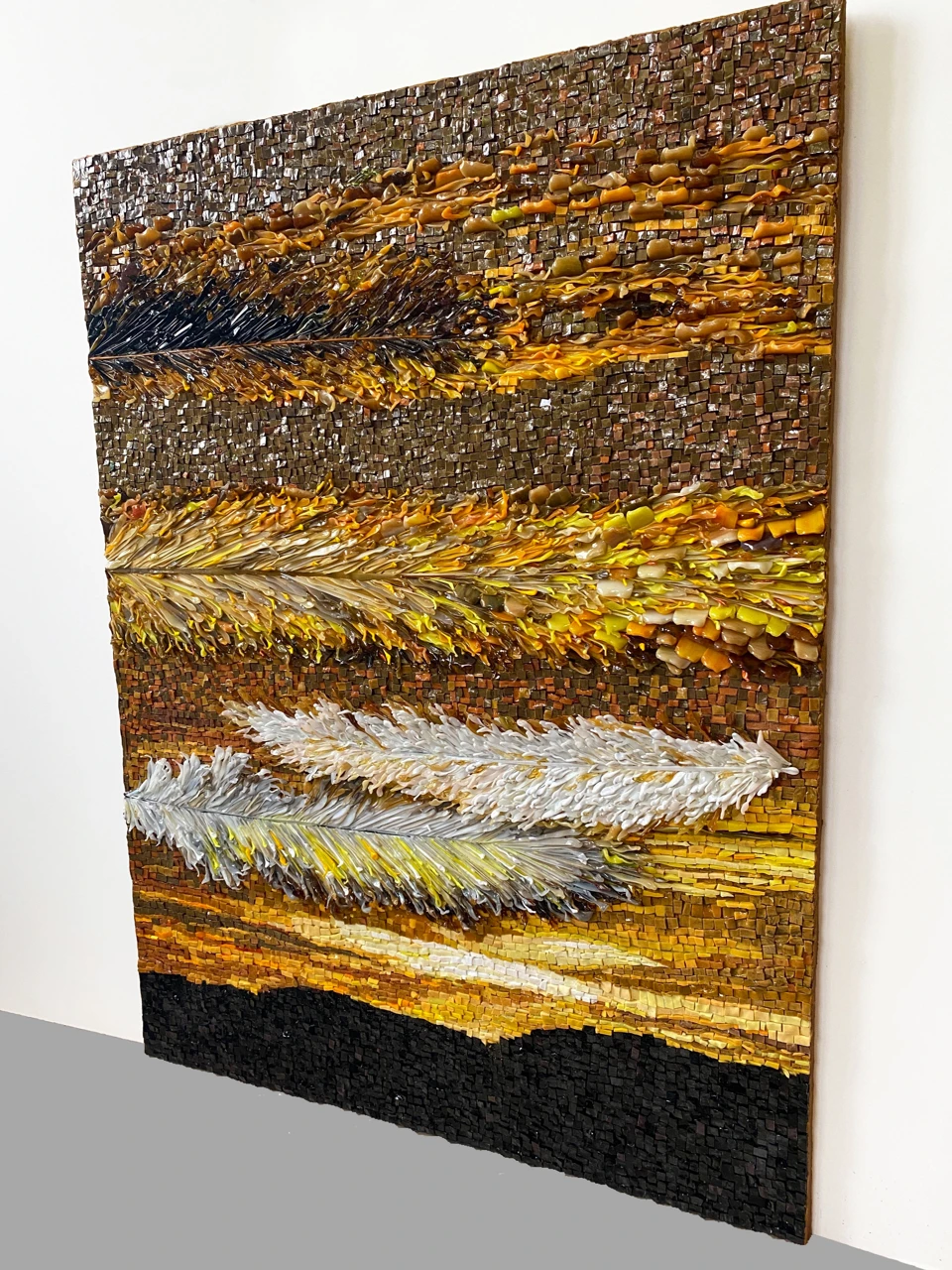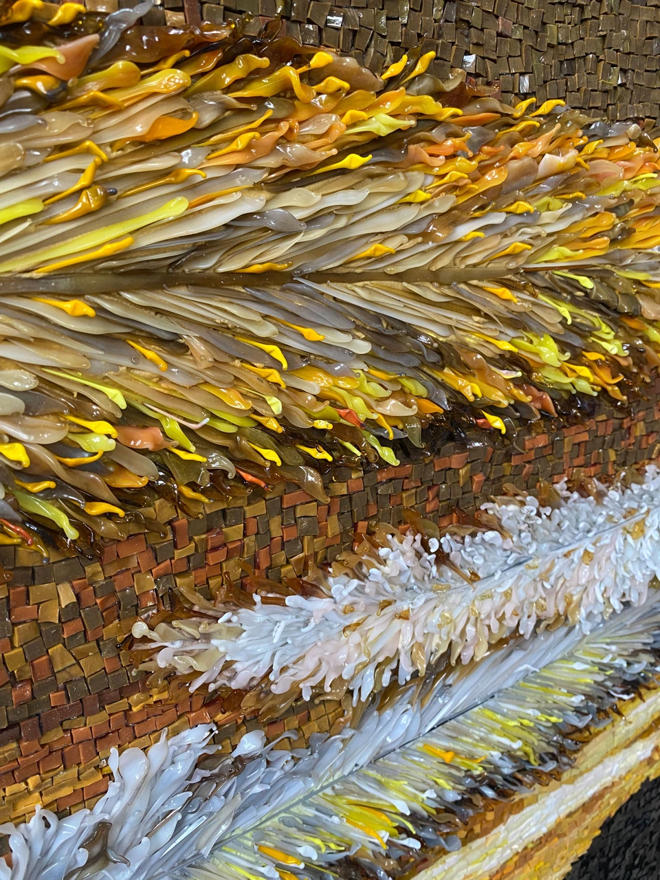 Объемное мозаичное панно выполнено в авторской технике мозаики из стеклянных элементов, каждый из которых выплавлен вручную.
