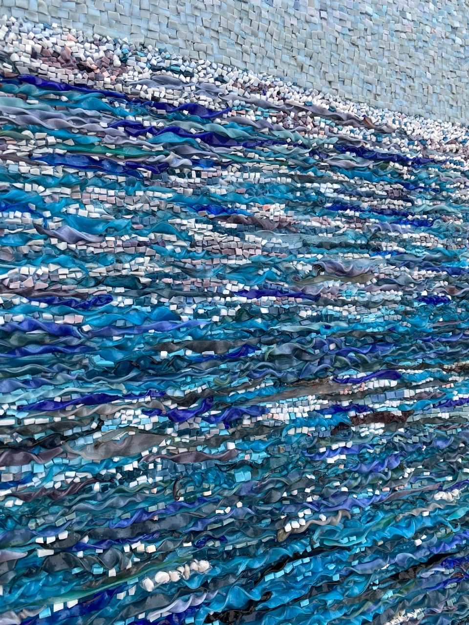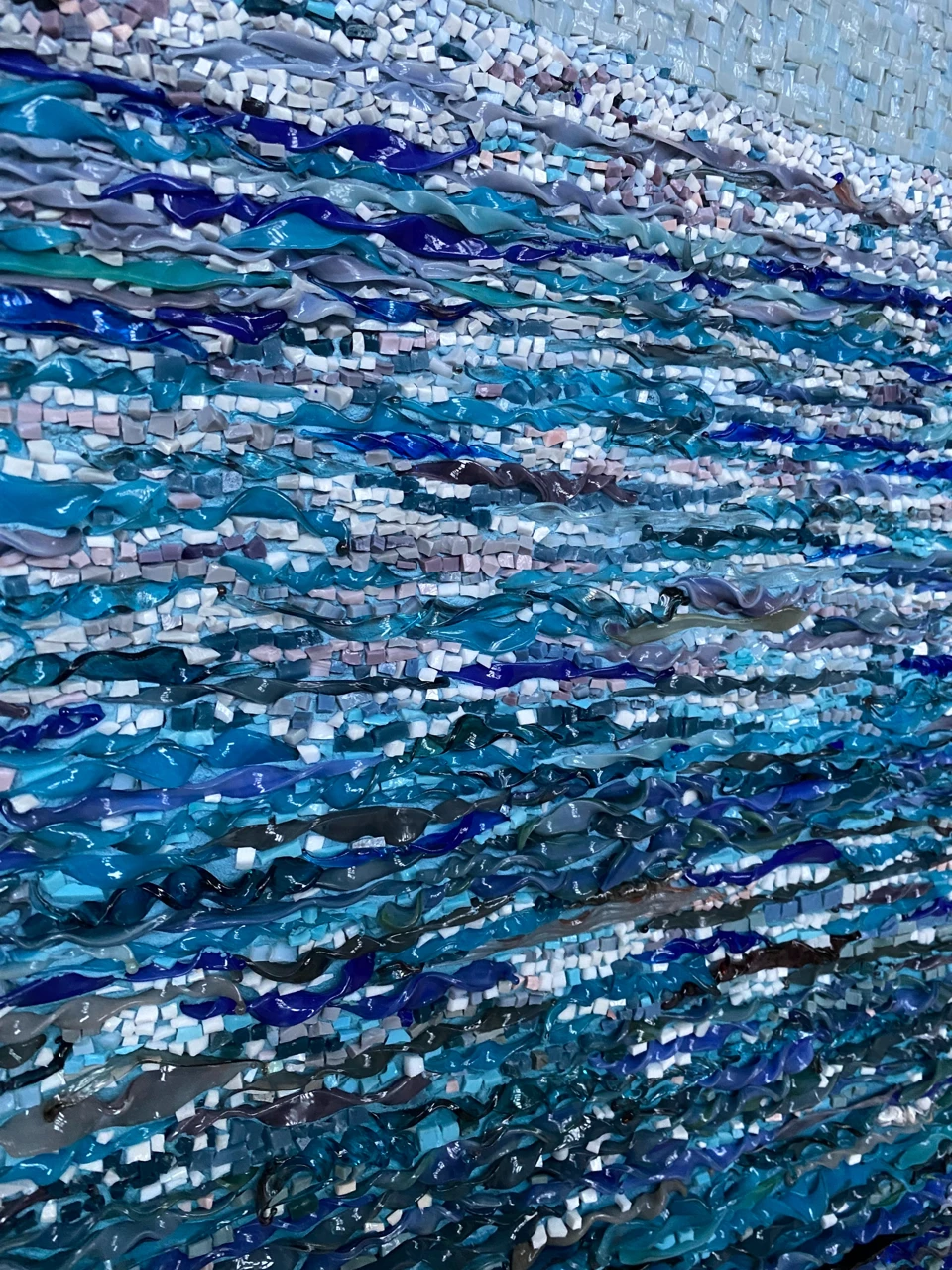 Мозаичное панно выполнено в авторской технике из стеклянных элементов, каждый из которых изготовлен вручную.