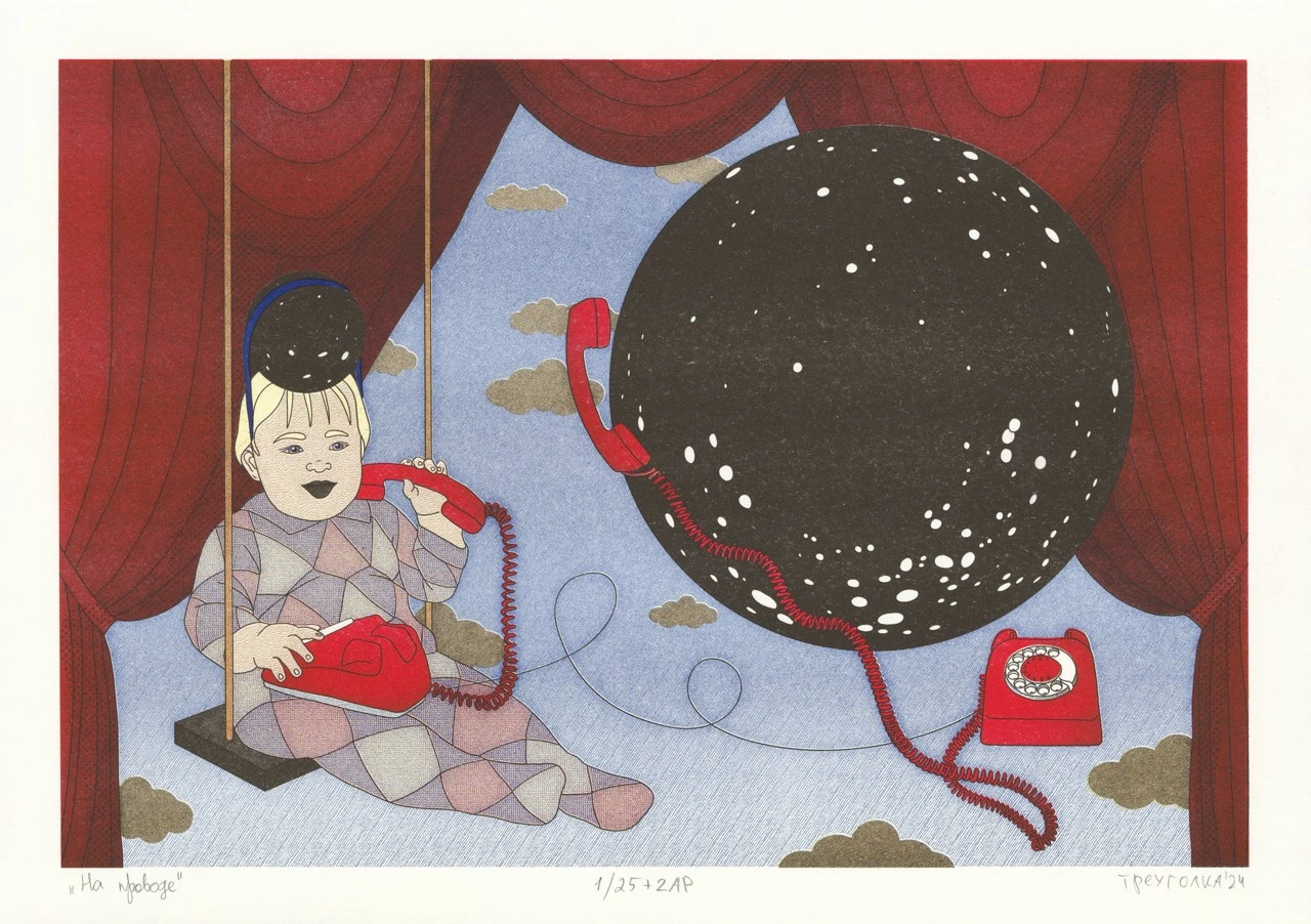 Серия ризографий «Цирковые вольности» — это череда изображений маленькой девочки, которая помещена в несколько разных абсурдных ситуаций на сцене цирка. Ведомая лишь волей умозрительного антрепренёра, она то раскачивается на огромных качелях над метафизической пропастью, то изображает разговор по телефону с небесными телами, то греется у костра с медведем на фоне декорации Млечного Пути.