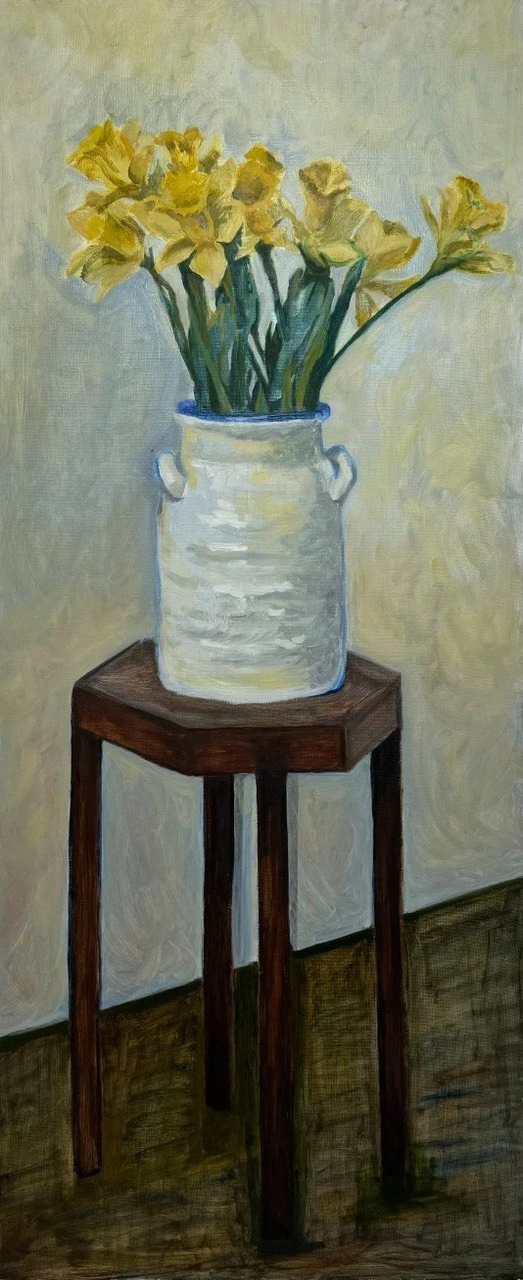 Елена Треуголка — современная художница, работает с живописью, графикой, малыми объектами и сценографией. Личные события и переживания из прошлого часто служат основой для ее работ.
