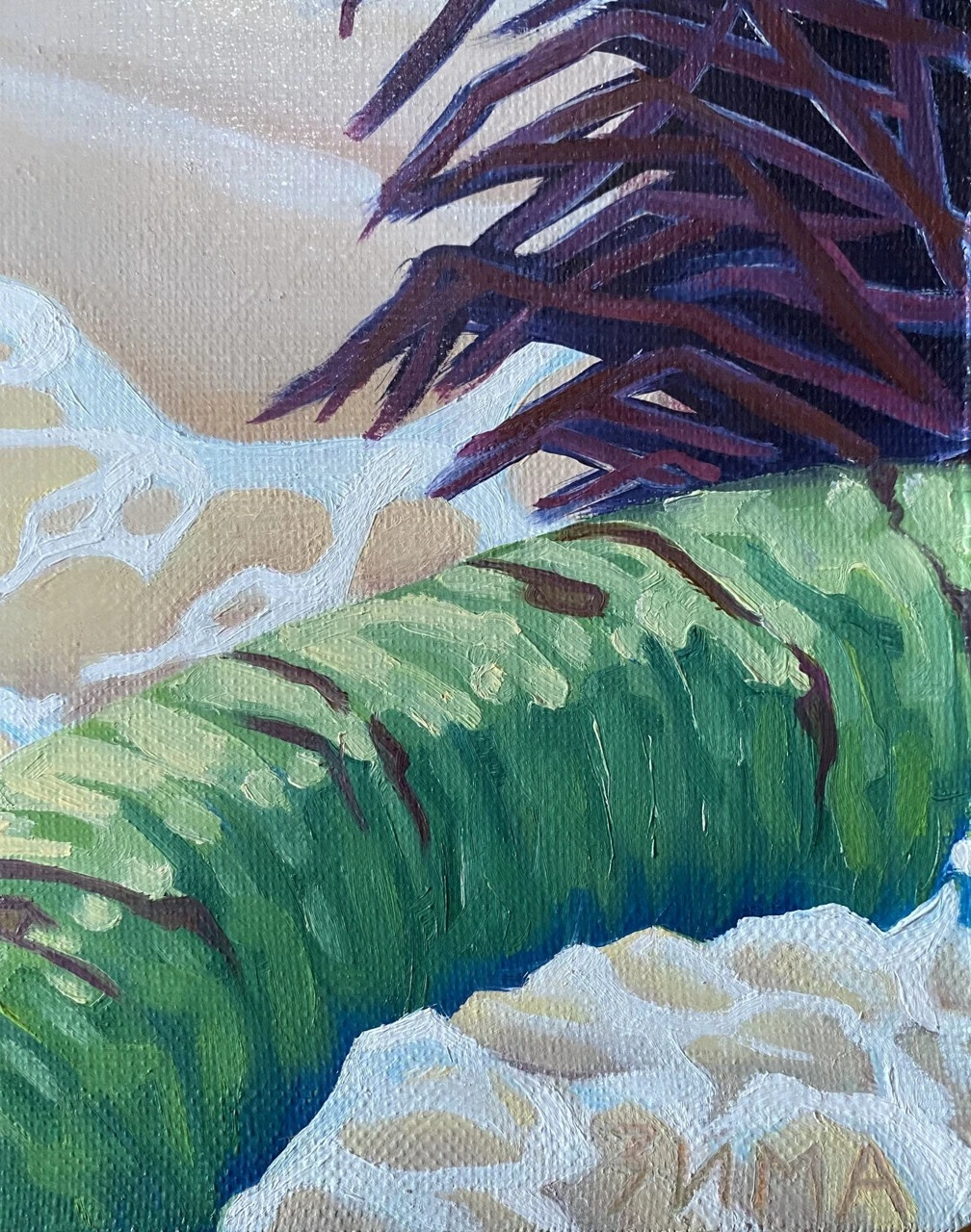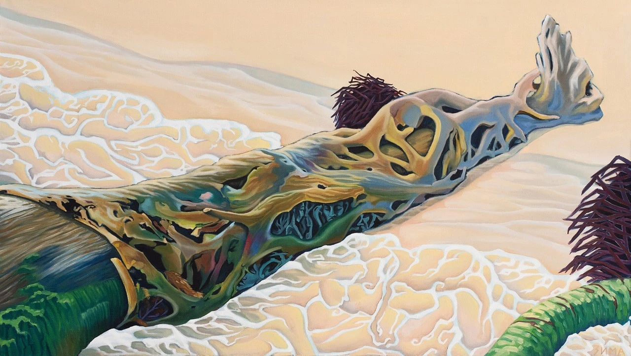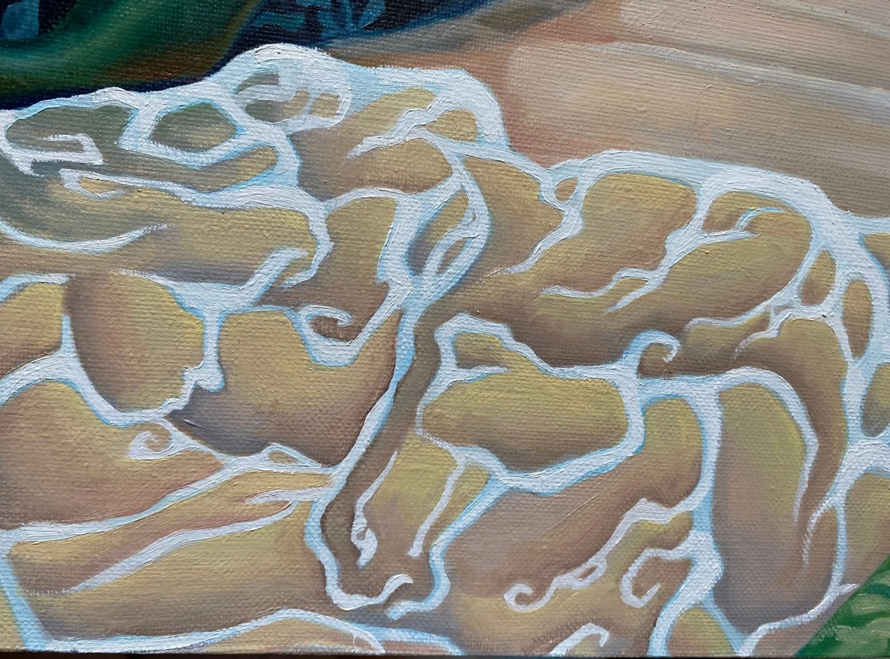 Картина написана в стиле магического реализма. В узор морской пены и в кору дерева вписаны многочисленные образы. Картину можно воспринимать на разных уровнях: как просто реалистичный пейзаж или читать как книгу, выискивая и рассматривая образы, складывающиеся в сюжет. Так в детстве, разглядывая облака, мы видели в них разные фигуры, а узор на бабушкином ковре выстраивался в хоровод туземцев, отплясывающих странные танцы.