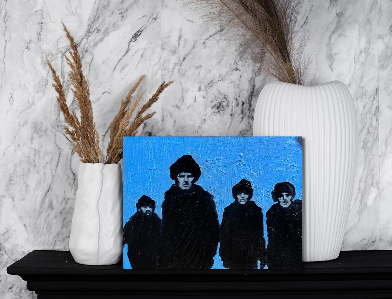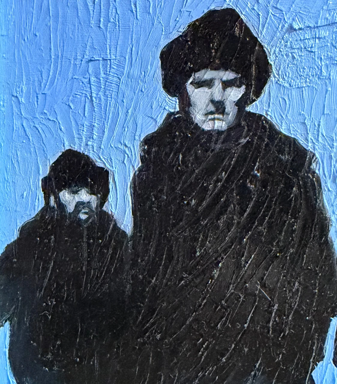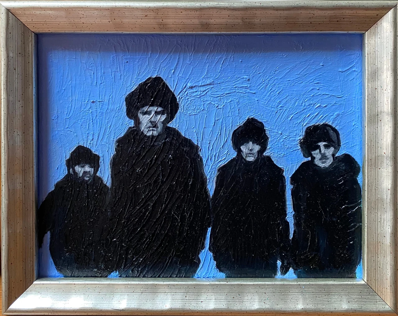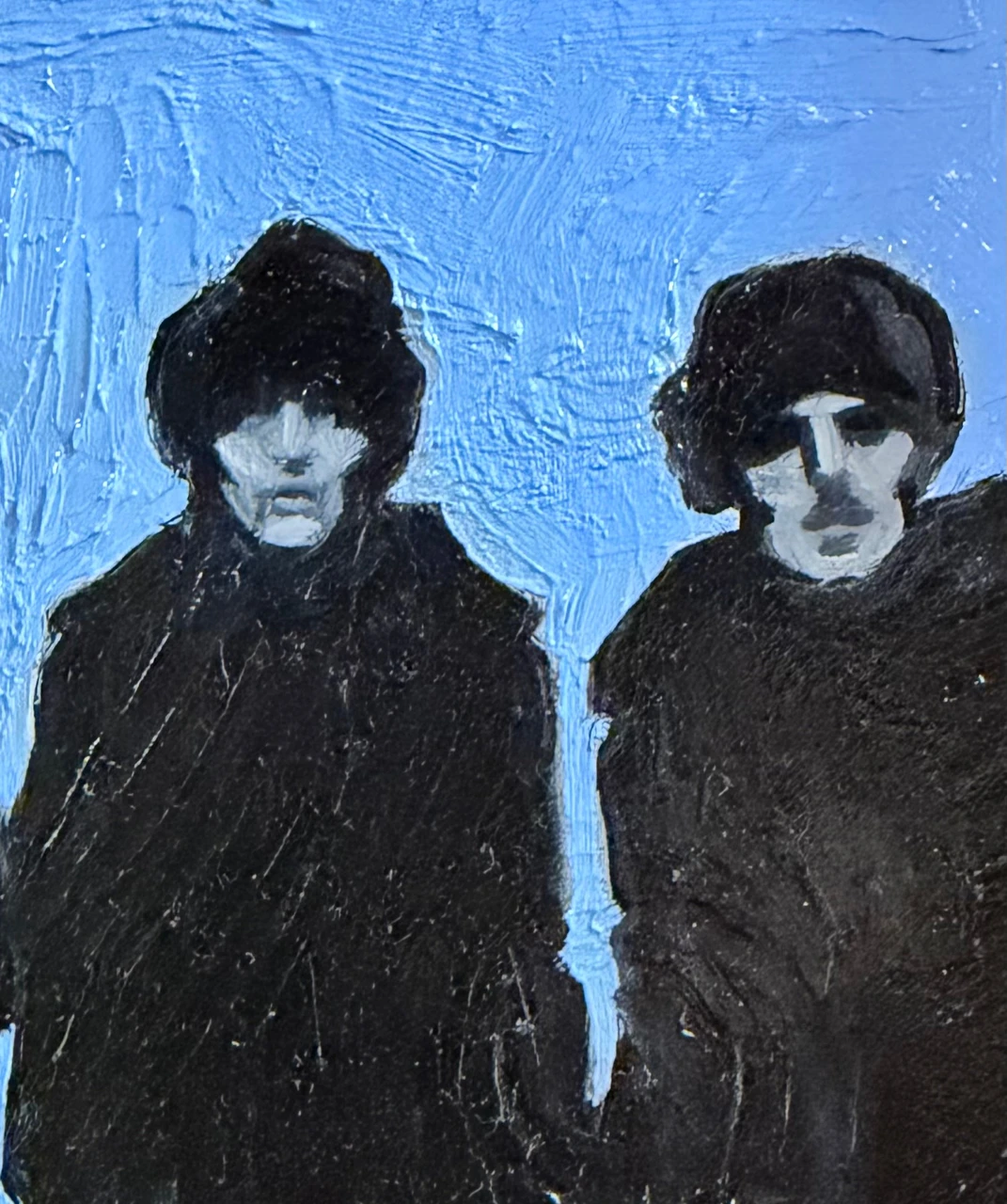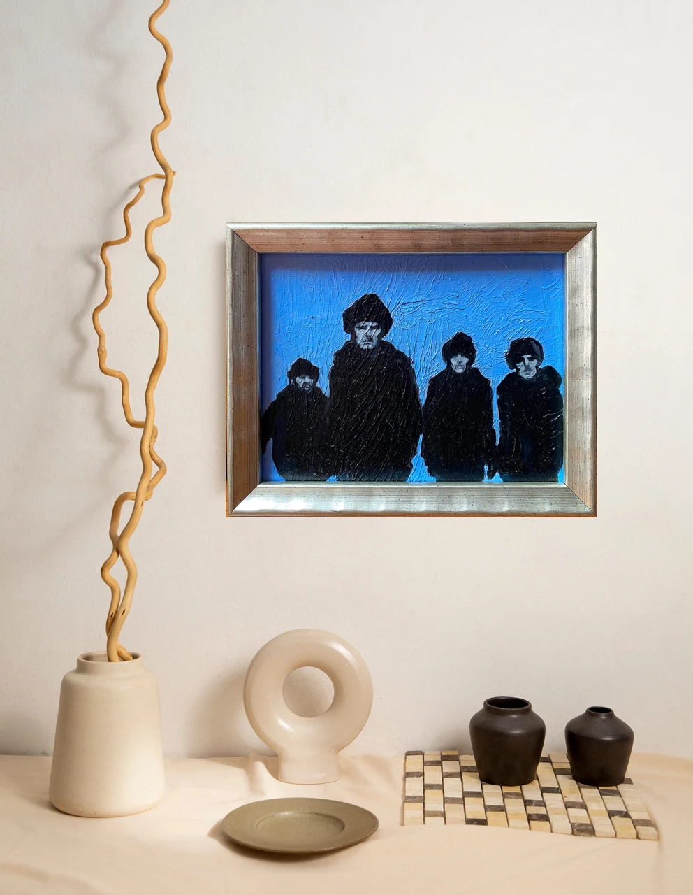 Картина из серии «Королевский голубой». В этой серии главенствует цвет — прохладный, немного меланхоличный, но благородный и оставляющий надежду, голубой. Сам сюжет картин этой серии пронизан иронией.
