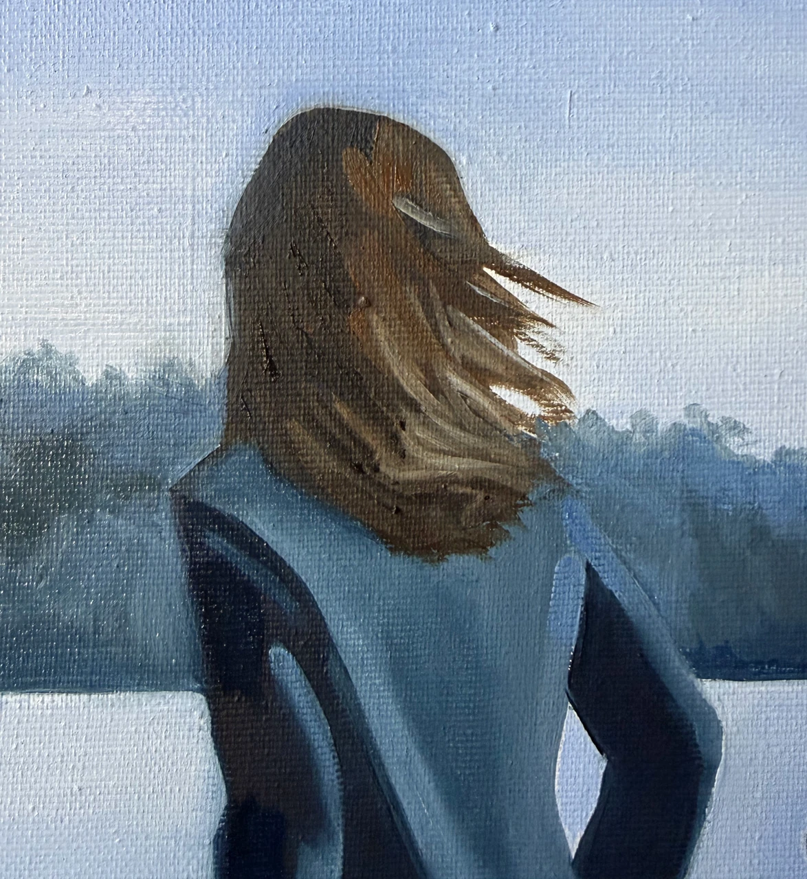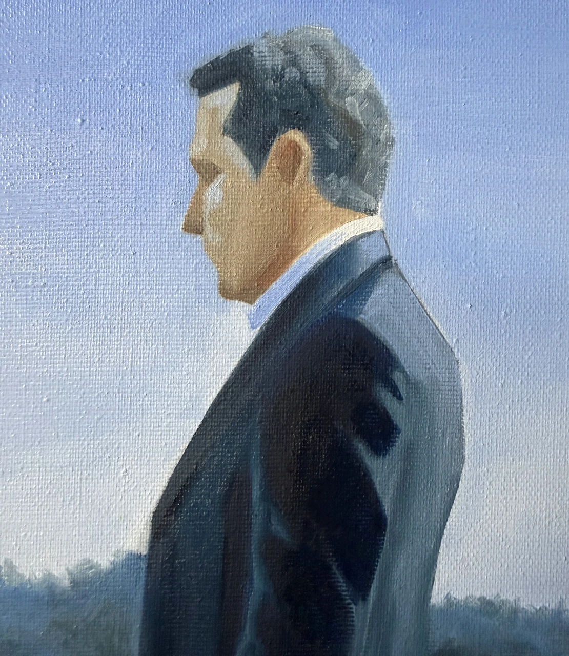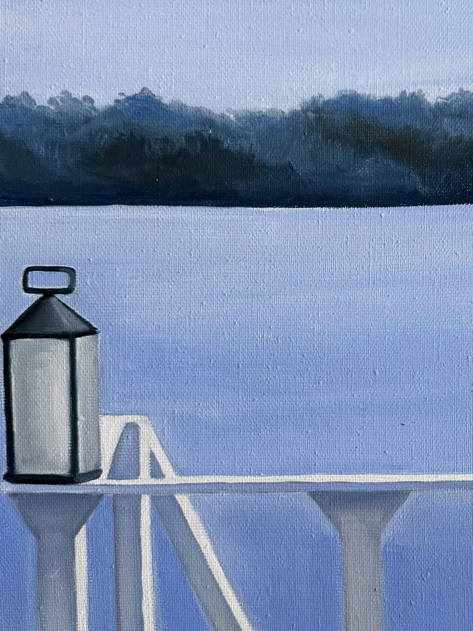 Картина из серии «Королевский голубой». В этой серии главенствует цвет — прохладный, немного меланхоличный, но благородный и оставляющий надежду, голубой. Сам сюжет картин этой серии пронизан иронией.