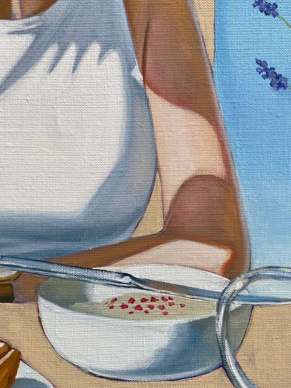 Картина из серии "Женщины". Женщина в этой серии картин — это не капризная роза с жалкими шипами из «Маленького принца», а кошка, которая всегда приземляется на все четыре лапы, она может быть воплощением нежности, несмотря на то, что она идеальный хищник, умеющий достигать цели. Быть ее близким — это счастье, которым надо дорожить. Рядом с ней тепло, безопасно и приятно. Но не стоит испытывать ее границы дозволенности, все же она хищница. И ее доброта к тебе, это не слабость, а кредит доверия.