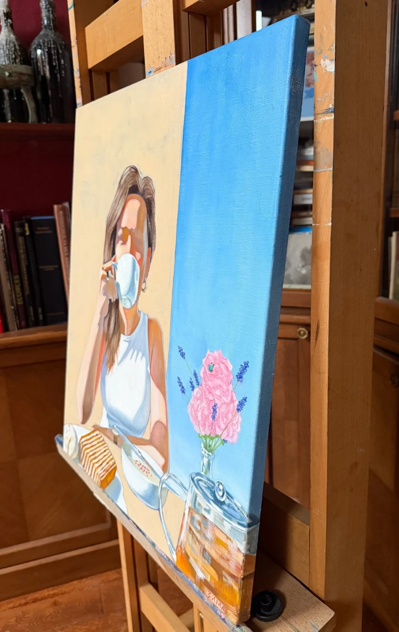 Картина из серии «Женщины». Женщина в этой серии картин — это не капризная роза с жалкими шипами из «Маленького принца», а кошка, которая всегда приземляется на все четыре лапы, она может быть воплощением нежности, несмотря на то, что она идеальный хищник, умеющий достигать цели. Быть ее близким — это счастье, которым надо дорожить. Рядом с ней тепло, безопасно и приятно. Но не стоит испытывать ее границы дозволенности, все же она хищница. И ее доброта к тебе, это не слабость, а кредит доверия.