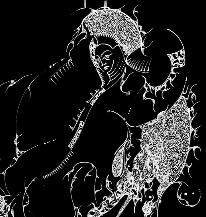Графическая линеарная абстракция из серии "Новая семиотика", в которой линия теряет свою направленность и функцию разграничения, становясь проводником к расплывчатым зонам транстелесного опыта. Работа формирует пористое, неиерархичное пространство, где человеческое, природное и техническое образуют спутанную сеть. Визуальный ритм композиции — мерцающий и нестабильный — задаёт состояние медитативного распознавания, в котором границы между субъектом и средой постепенно утрачиваются. Это часть Новой семиотики: языка, лишённого сопротивления, но насыщенного присутствием, чувством приближающегося касания.