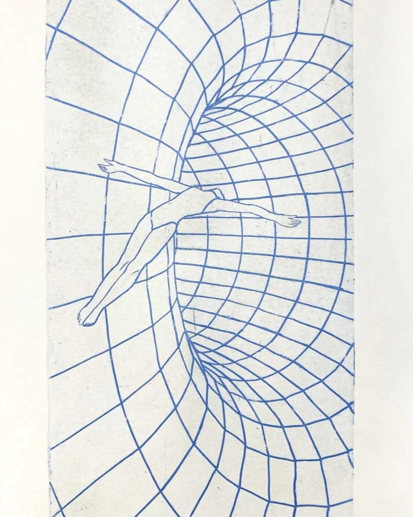 Композиция купальщицы расположена на увеличенном графике чёрной дыры.