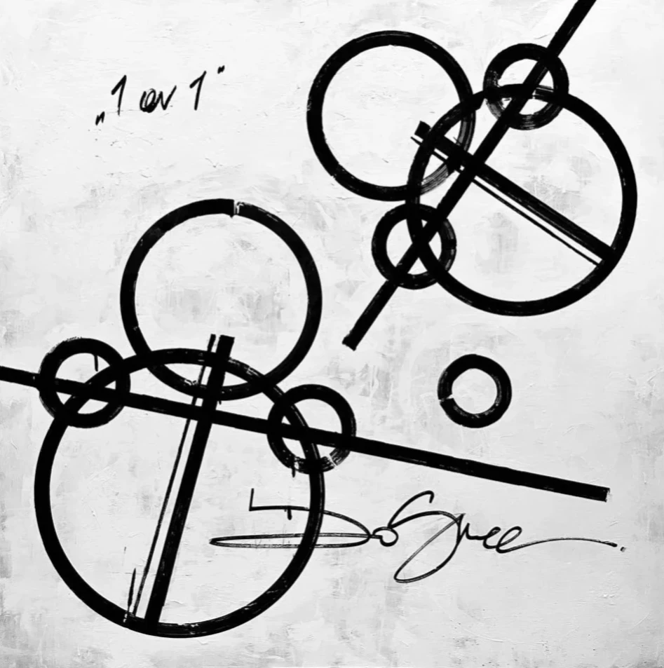 Композиция работы акцентирует внимание на интимности и сосредоточенности, на личном столкновении или диалоге. Картина оставляет пространство для интерпретации, приглашая зрителя задуматься о балансе, конкуренции и взаимосвязи между двумя элементами.