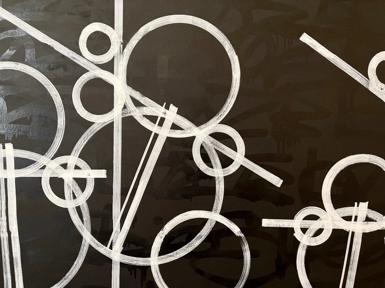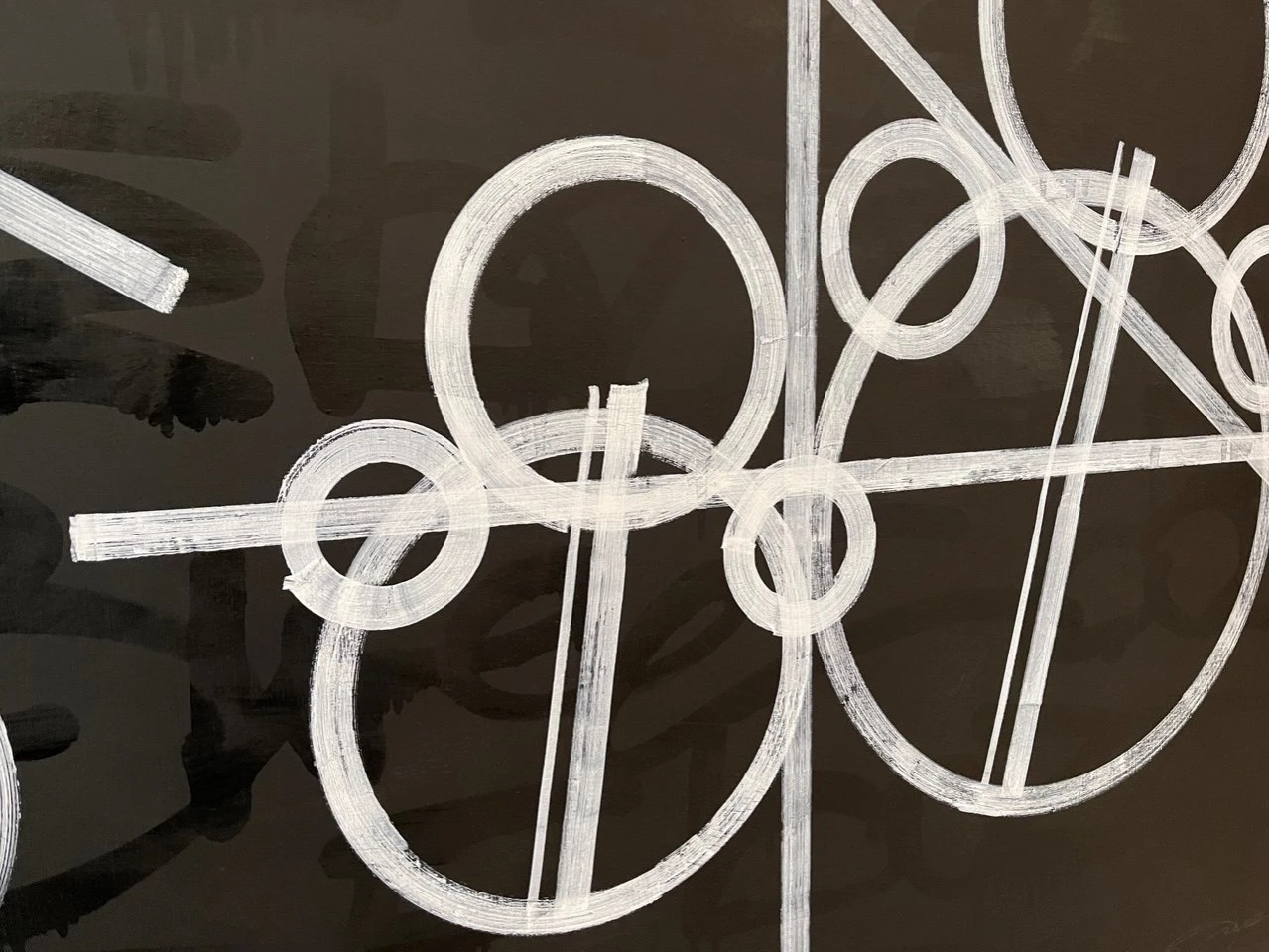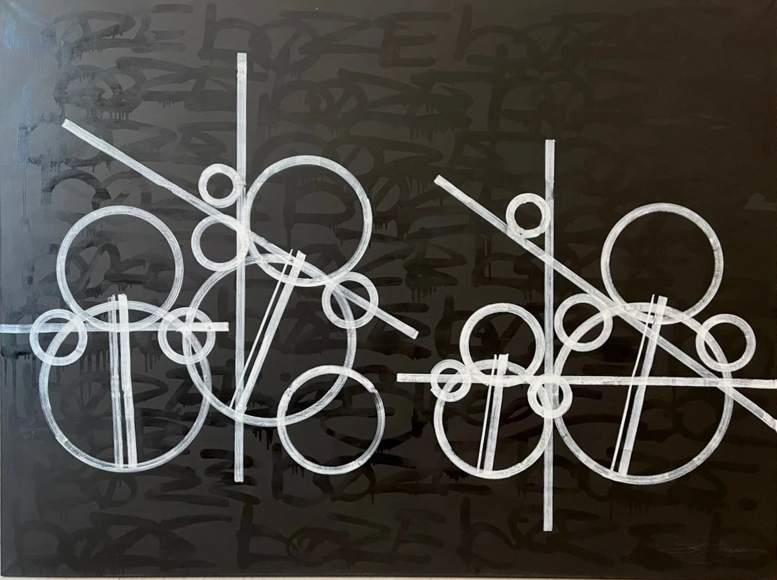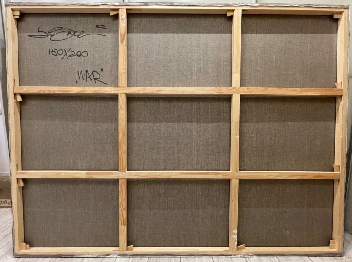 «War» — черно-белый калейдоскоп форм, в котором две группы кругов сталкиваются и сосуществуют, создавая ощущение напряженности и конфликта. Картина приглашает зрителя задуматься о природе столкновений и гармонии, скрывающихся за плотной структурой и контрастами.