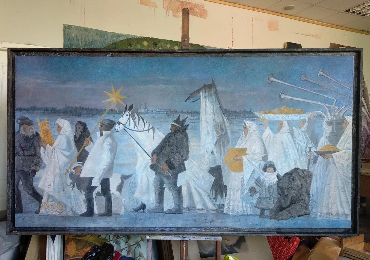 «Верный да суеверные» — дипломная работа, написанная темперными красками по крупнозернистой фактуре холста. Картина создана под руководством Е.Н. Максимова и И.Л. Лубенникова и посвящена теме переплетения языческих обрядов и русского христианства.