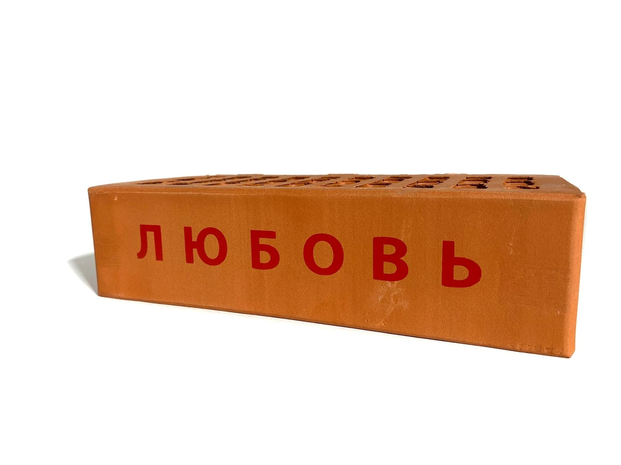 Абсолютно каждому понятный кирпич — вещь обыденная и вместе с тем обладает такими априорными качествами, как универсальность, прочность, долговечность, простота, многогранность и гибкость в применении. Надёжная часть чего-то большего. И, наконец, обладает многовековой историей, которая ставит подпись под его исключительной уникальностью и невозможностью не быть в мире, придуманном людьми. Поэтому стандартный кирпич, как медиум, несущий на себе слово, фундаментально, становится символом, иронично репрезентующим привычные идеи.