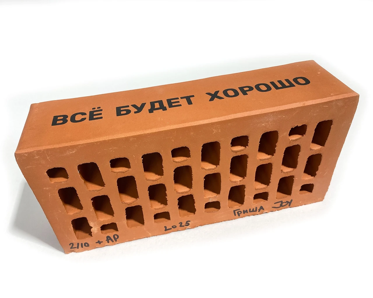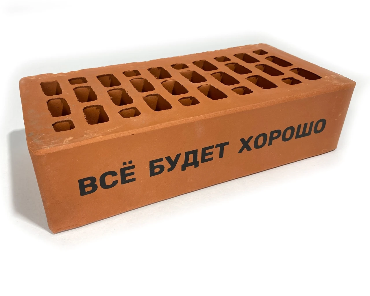 Абсолютно каждому понятный кирпич — вещь обыденная и вместе с тем обладает такими априорными качествами, как универсальность, прочность, долговечность, простота, многогранность и гибкость в применении, надежная часть чего-то большего. И, наконец, обладает многовековой историей, которая ставит подпись под его исключительной уникальностью и невозможностью не быть в мире, придуманном людьми. Поэтому стандартный кирпич, как медиум, несущий на себе слово фундаментально, становится символом идеи, талисманом либо ироничной шуткой.