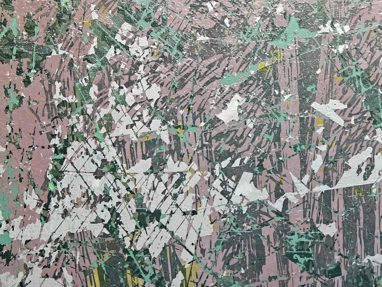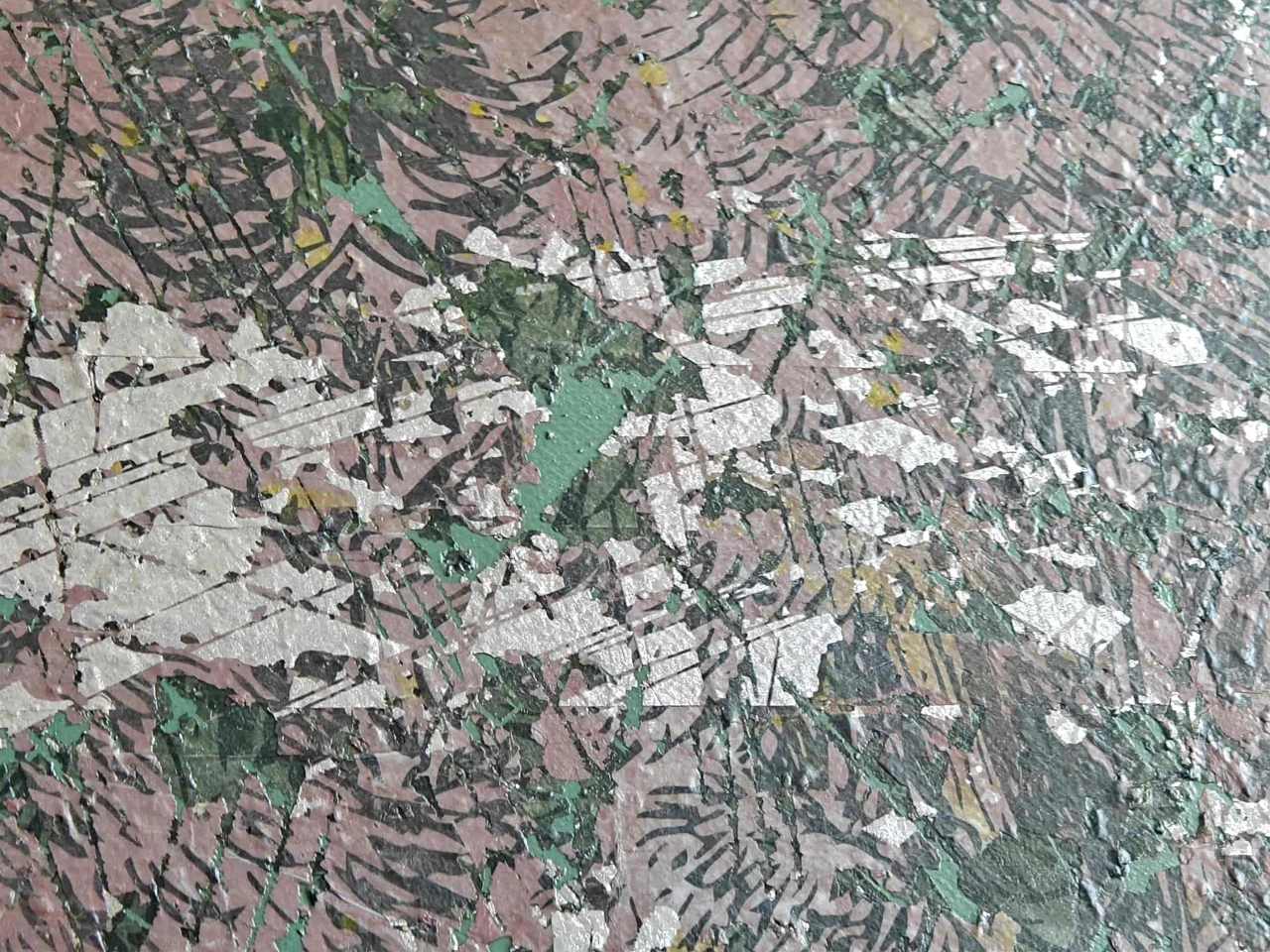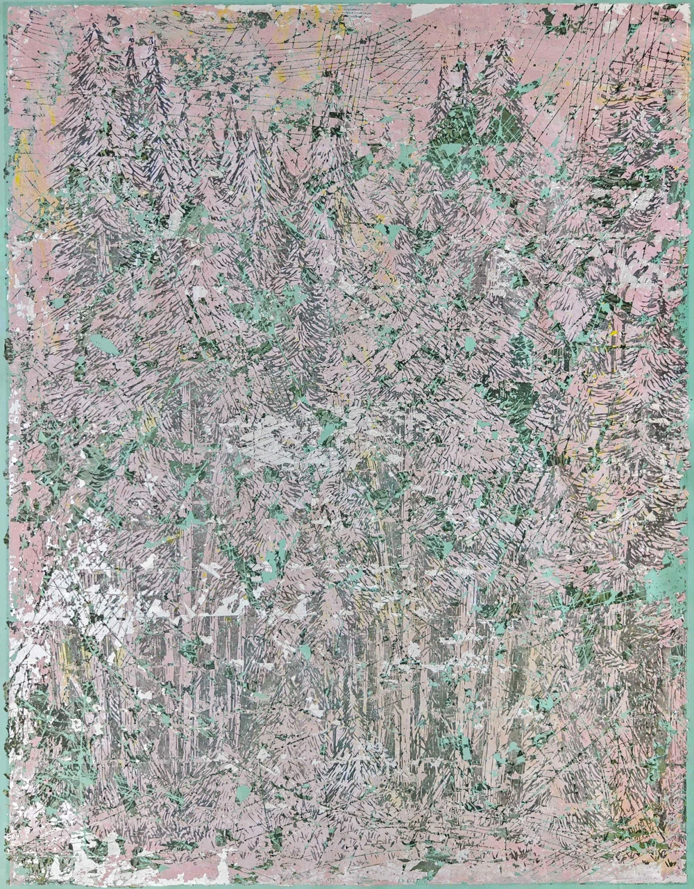 Лес здесь — случайный пленник, застрявший между слоёв, как старая газета в штукатурке. Я специально испортил чёткость изображения — перевел её в фактуру, в шум. Получилось что-то между природой и её дефектной копией.