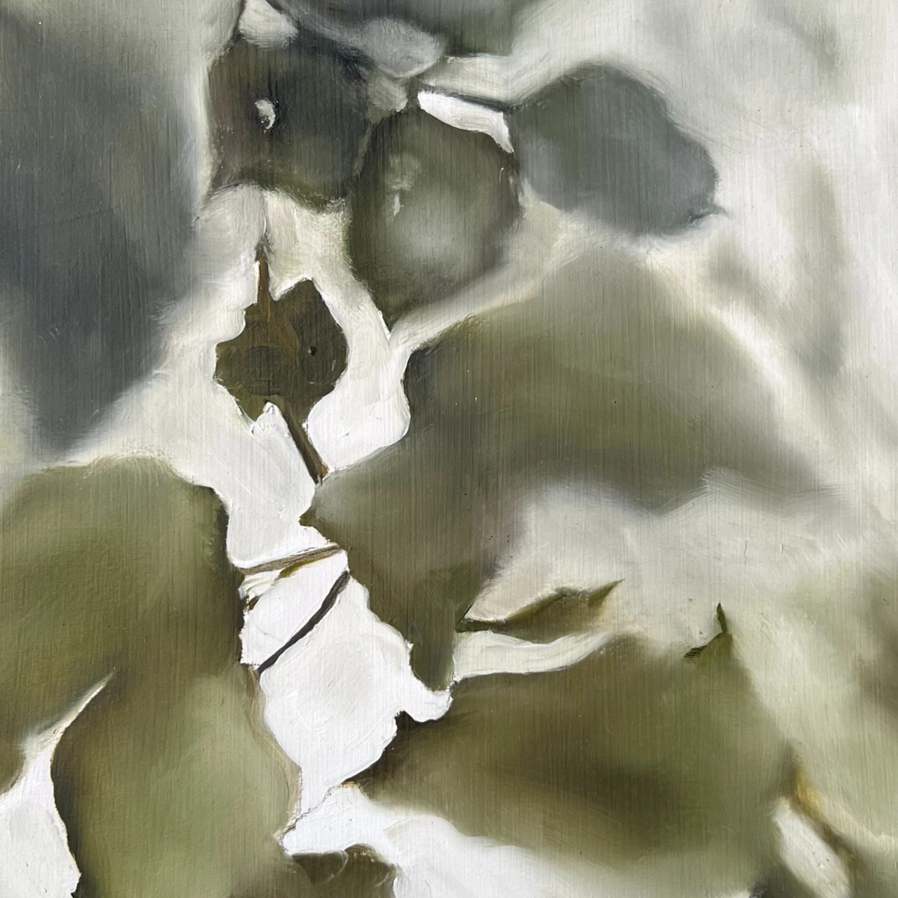 Сад детства, мой ровесник — место, где сосредоточены воспоминания. С течением времени меняется его облик. Каждое растение, дерево или цветок, хранит в себе историю. В этом проекте я обращаюсь к воспоминаниям, истории своей семьи. Запечатлев тени или силуэты уцелевших за годы растений, я пытаюсь продлить их жизнь и сохранить память о том, что пока объединяет несколько поколений моей семьи. Для реализации проекта я выбрала деревянные панели и холсты квадратной формы. Именно дерево кажется мне наиболее подходящим материалом. А форма квадрата — как символ неподвижности материи в противопоставление ускользающей жизни. Каждая работа — визуальная история на основе рассказа моих близких или собственных воспоминаний.