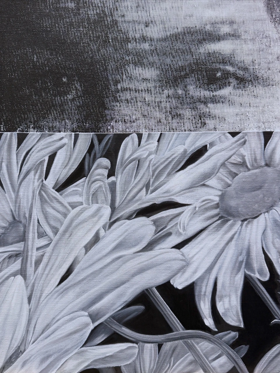 Серия «Сокрытое» — об утраченной связи с прошлым: используя архивные семейные фотографии, я размышляю о преемственности поколений, трансформации памяти, исследую механизмы передачи воспоминаний, а образ сада работает как символ родственных связей. Сочетая живопись и шелкографию, я противопоставляю опыт присутствия здесь и сейчас идее серийности тиражируемых образов памяти прошлого.