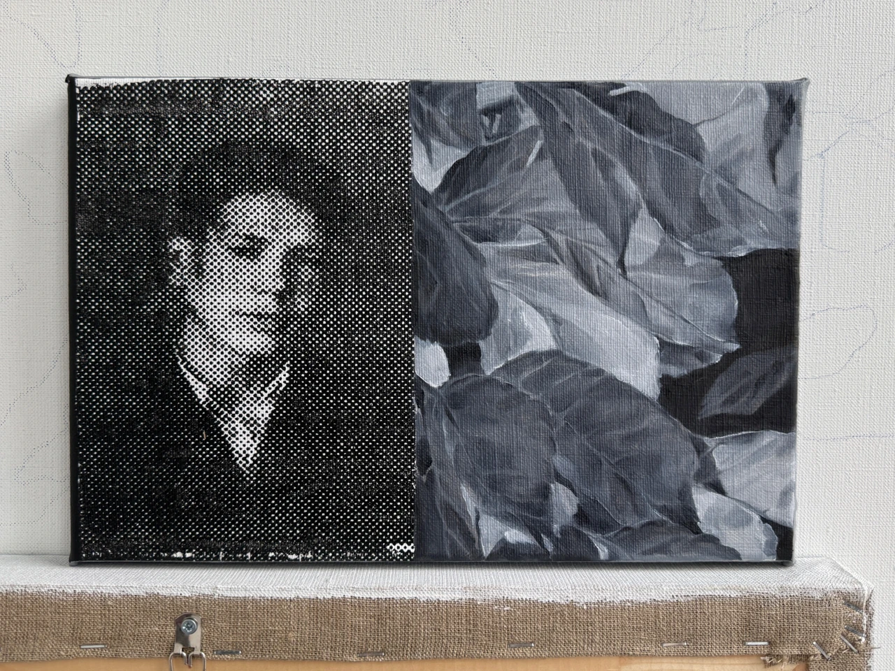 Серия «Сокрытое» — об утраченной связи с прошлым: используя архивные семейные фотографии, я размышляю о преемственности поколений, трансформации памяти, исследую механизмы передачи воспоминаний, а образ сада работает как символ родственных связей. Сочетая живопись и шелкографию, я противопоставляю опыт присутствия здесь и сейчас идее серийности тиражируемых образов памяти прошлого.