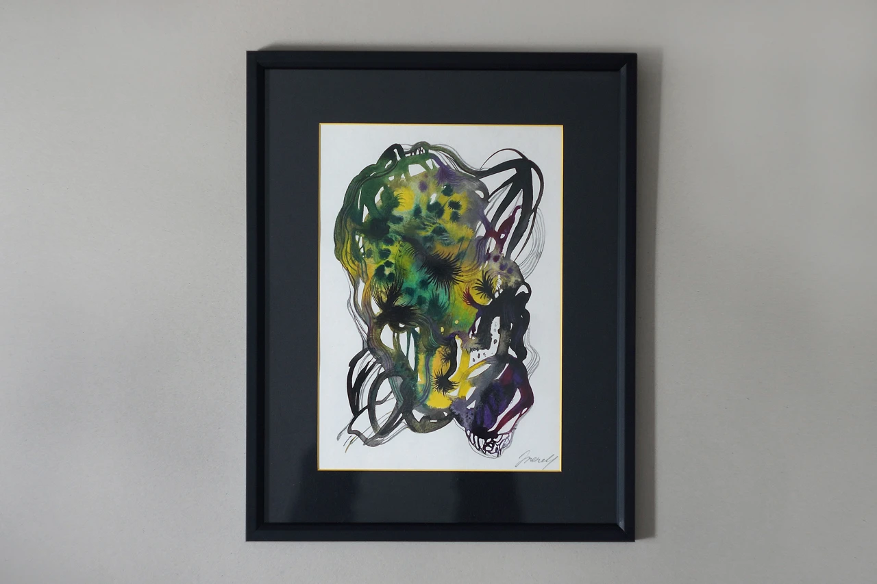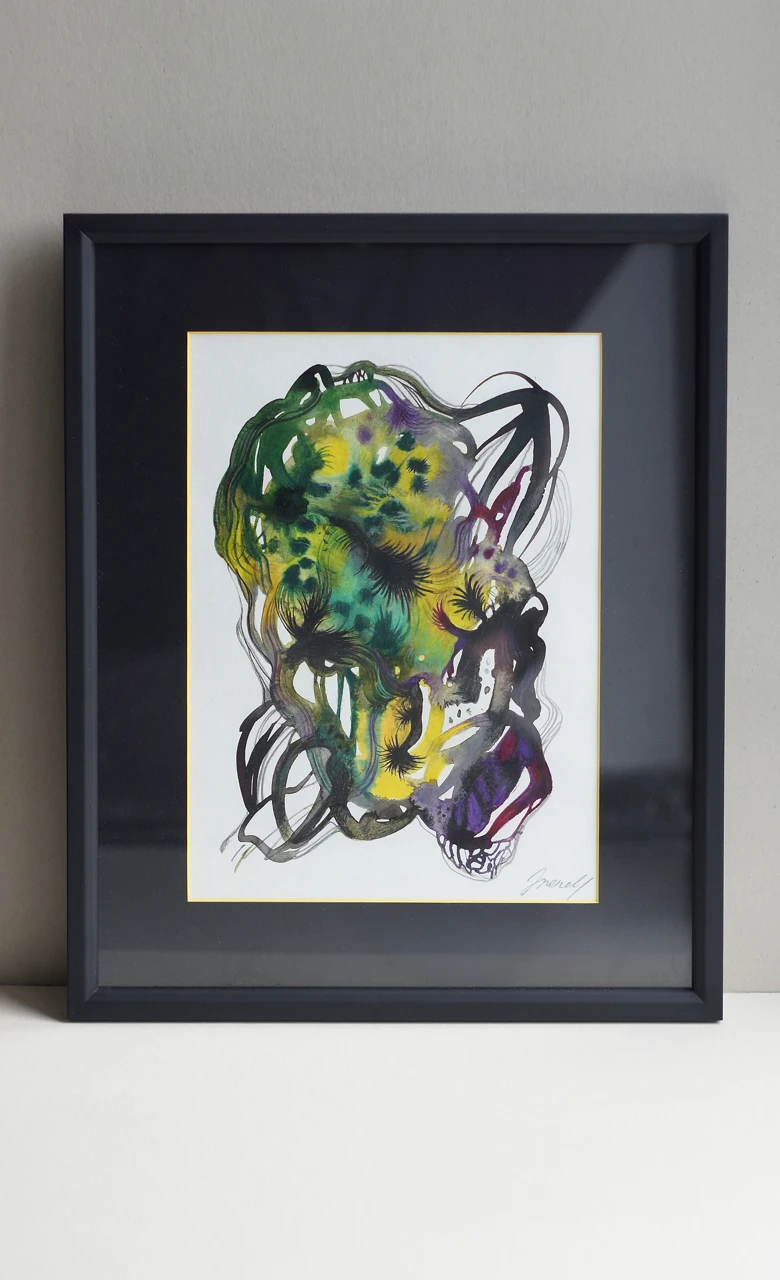Размер работы без оформления: 21 х 29,7 см. Работа оформлена в паспарту и деревянный багет со стеклом, размер с оформлением: 41,5 х 32,8 х 1,5 см. Надёжно упакована в картонную коробку с пузырчатой плёнкой и бумажным наполнителем внутри.
