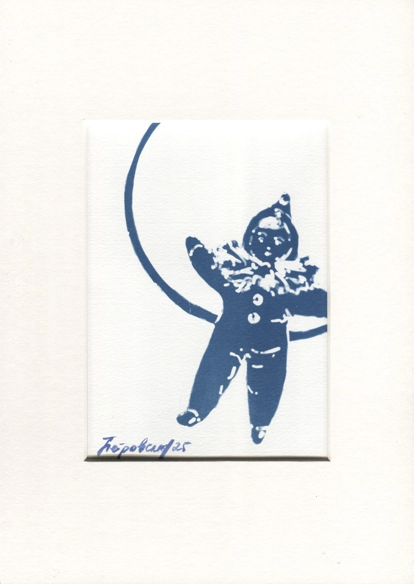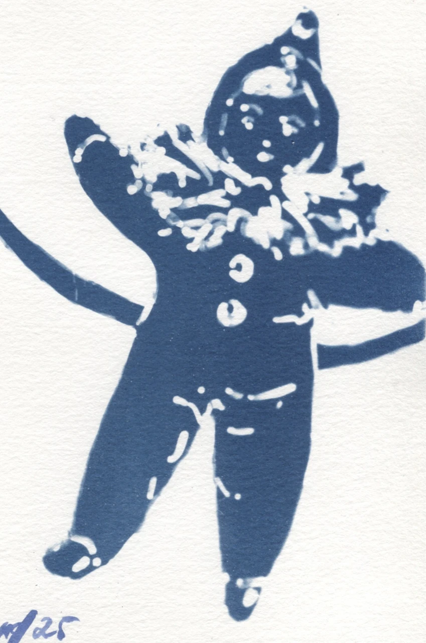 Цианотипный отпечаток с ватной игрушкой - Арлекином.