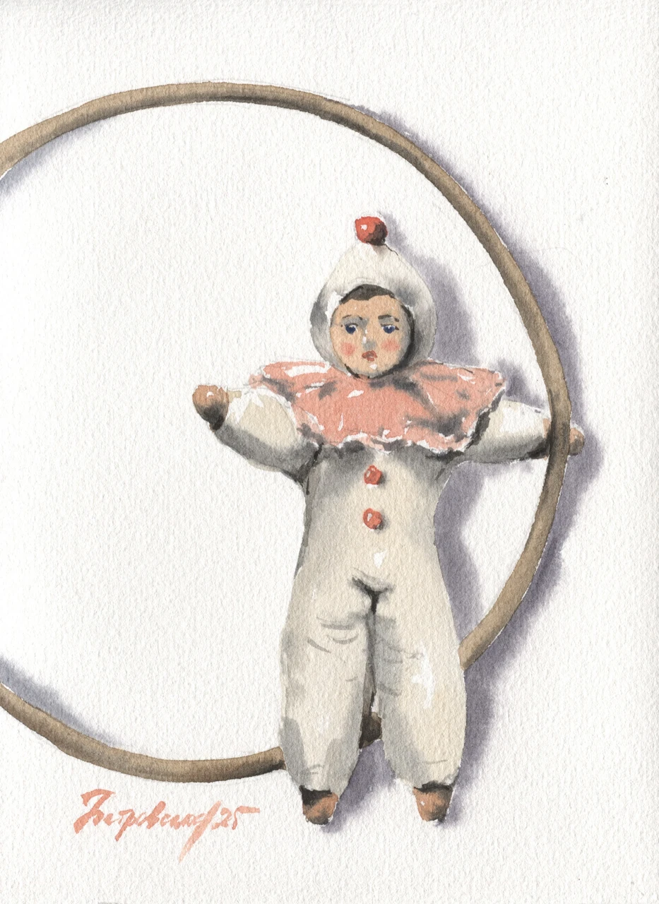 Новогодняя работа с ватной елочной игрушкой.